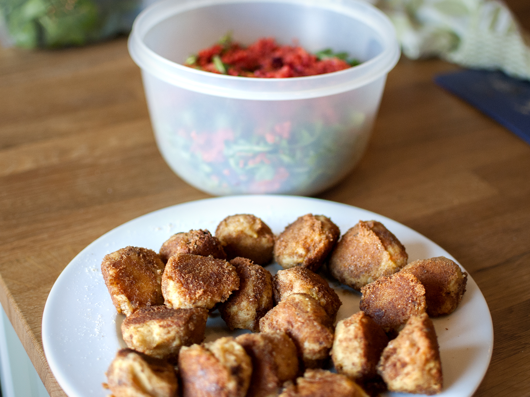 Matiga och smakrika vegobullar som påminner om falafel. Lite pilligt att göra med en del olika moment, men väl värt mödan. Jag åt dem med en sallad från dagen innan, det funkar också att göra en yoghurtsås och servera med ris som Ica anger i sitt originalrecept (som du hittar här). Min egen variant blev bland annat fri från ägg, eftersom jag glömt att köpa. Gick finfint ändå!