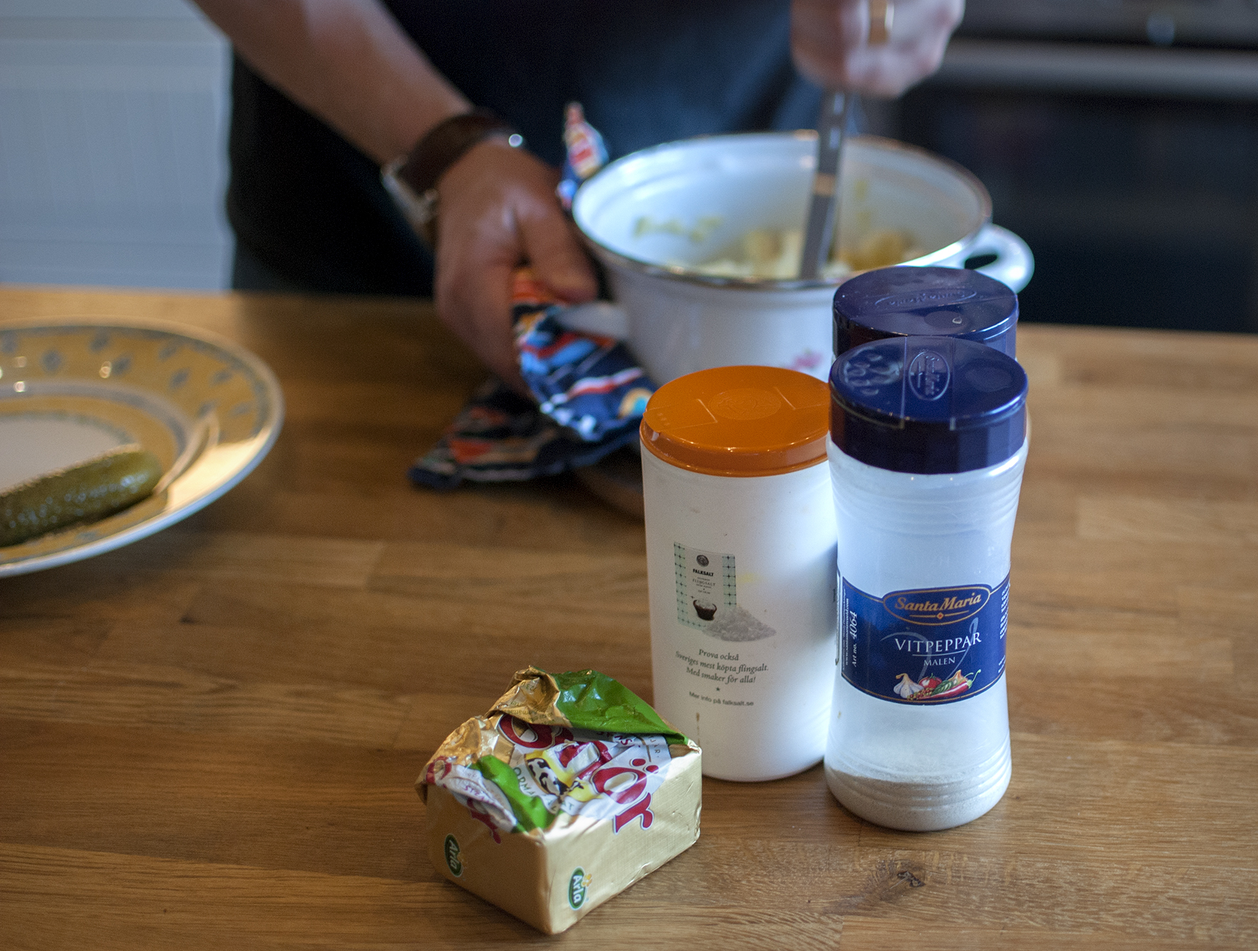Hemma hos oss är det nästan alltid maken som lagar potatismos. Inte för att jag inte vet hur man gör, men det har blivit lite av hans grej. När det är potatismosmat brukar vi laga rätten tillsammans, han mos och jag det som ska vara till. Mysigt!