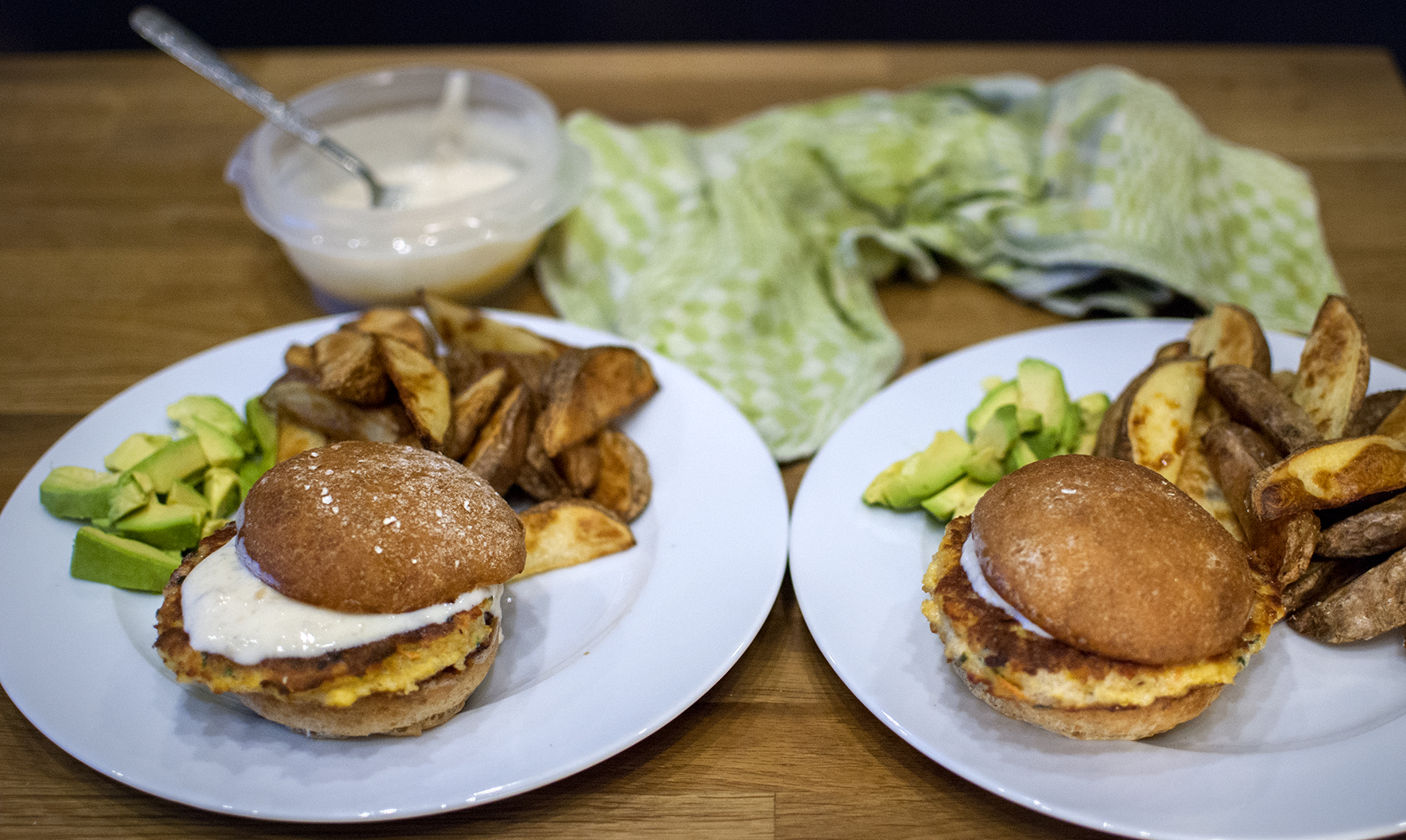 Jag gillar verkligen halloumi och har länge varit sugen på att göra en burgare av den salta osten. Nu blev det äntligen av! De fick gott betyg av maken. Jag hade kanske förväntat mig tydligare halloumismak men tyckte också att de var riktigt saftiga och goda. Vi fixade klyftpotatisar till, passar bra. Nästa gång kanske jag skippar den söta dressingen och byter mot något annat. Och nästa gång: det kan bli på grillen i sommar – hurra!