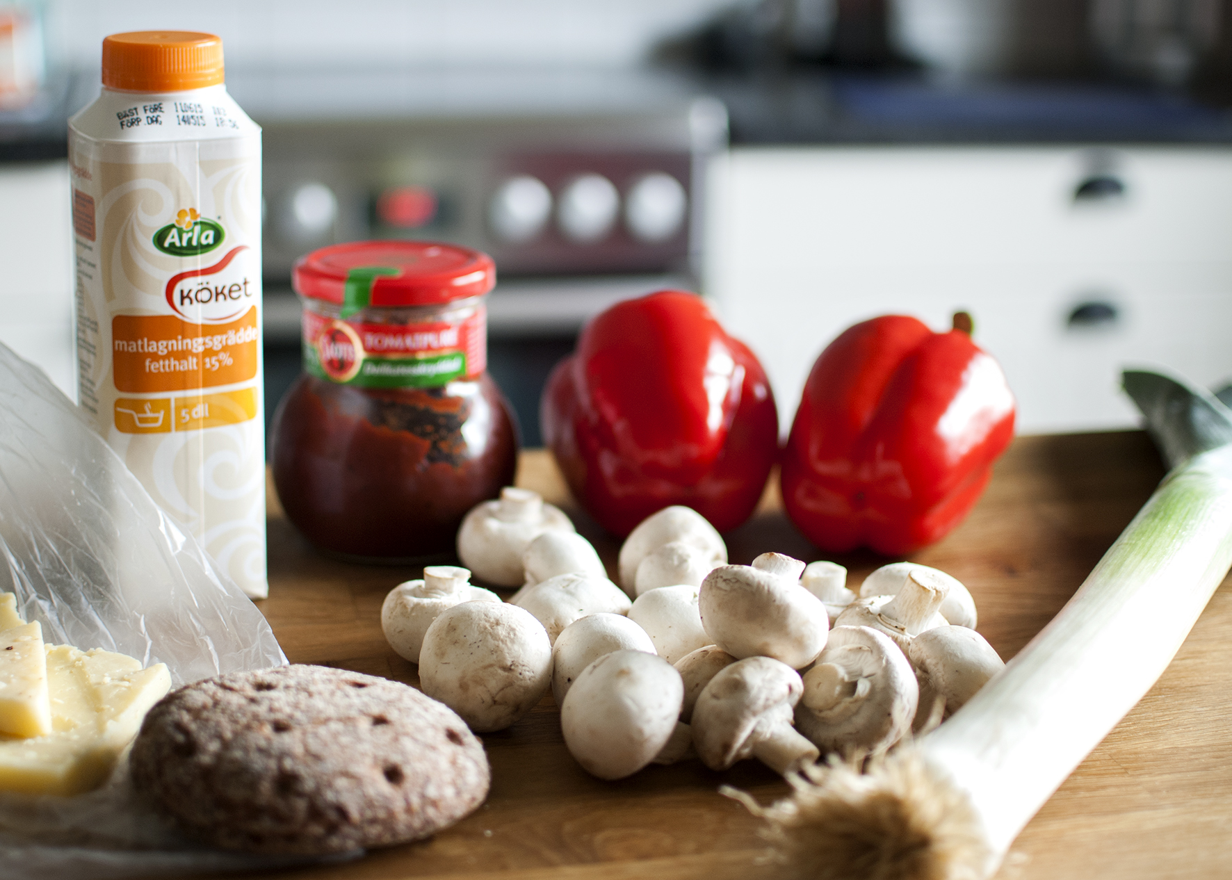 Den här fyllda paprikan är mustig och har en lite ”köttig” konsistens tack vare det grova brödet, som är en del av fyllningen. Tar en liten stund att göra, men svårighetsgraden är ungefär lika låg som i de flesta recept jag lägger ut.