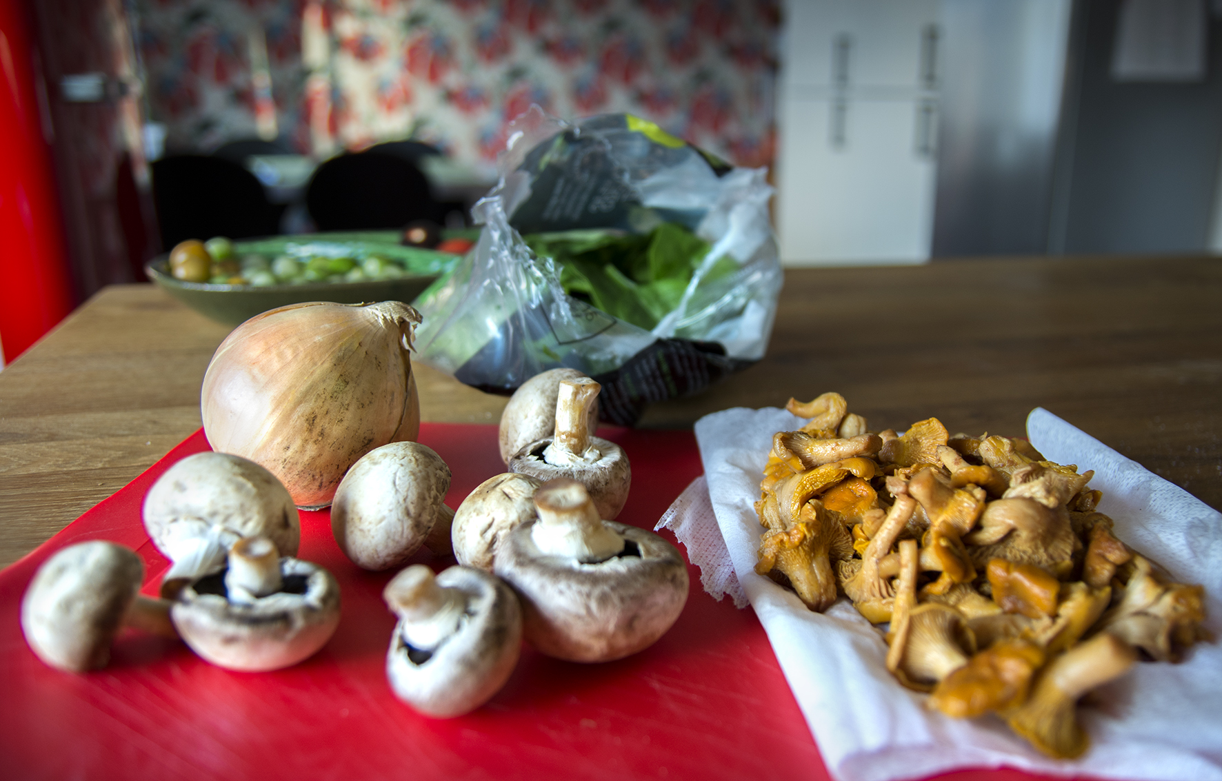 250 gram färsk svamp (kantareller och/eller champinjoner)
