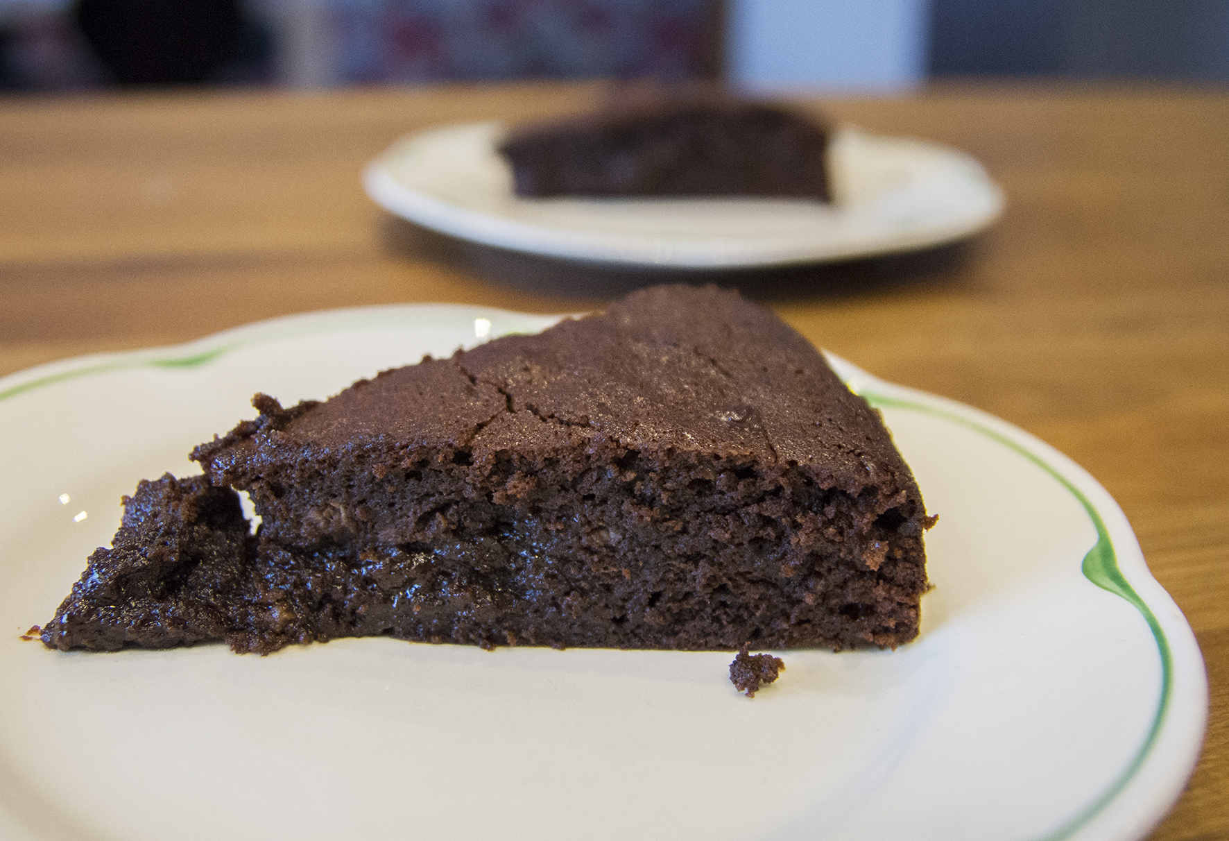 Hoppsan – en efterrätt har smugit sig in på bloggen! Och inte vilken som helst, en härligt chokladstinn kaka med mjölkchokladkola och ett litet uns av flingsalt som lyfter den till oanade höjder. En liten bit räcker.