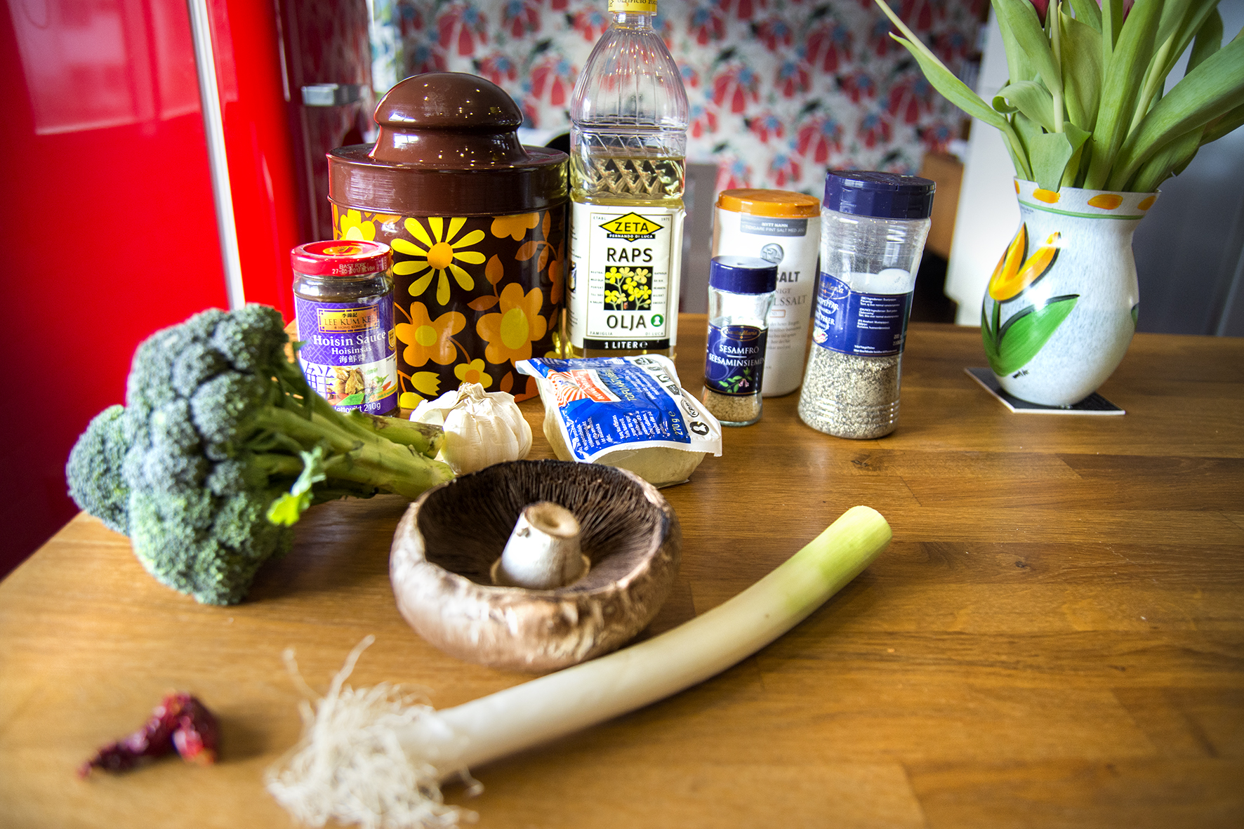 Om jag gör den här igen blir det hälften så mycket hoisinsås och utan tofu. De stekta grönsakerna med lite chilibett var fantastiskt goda!
