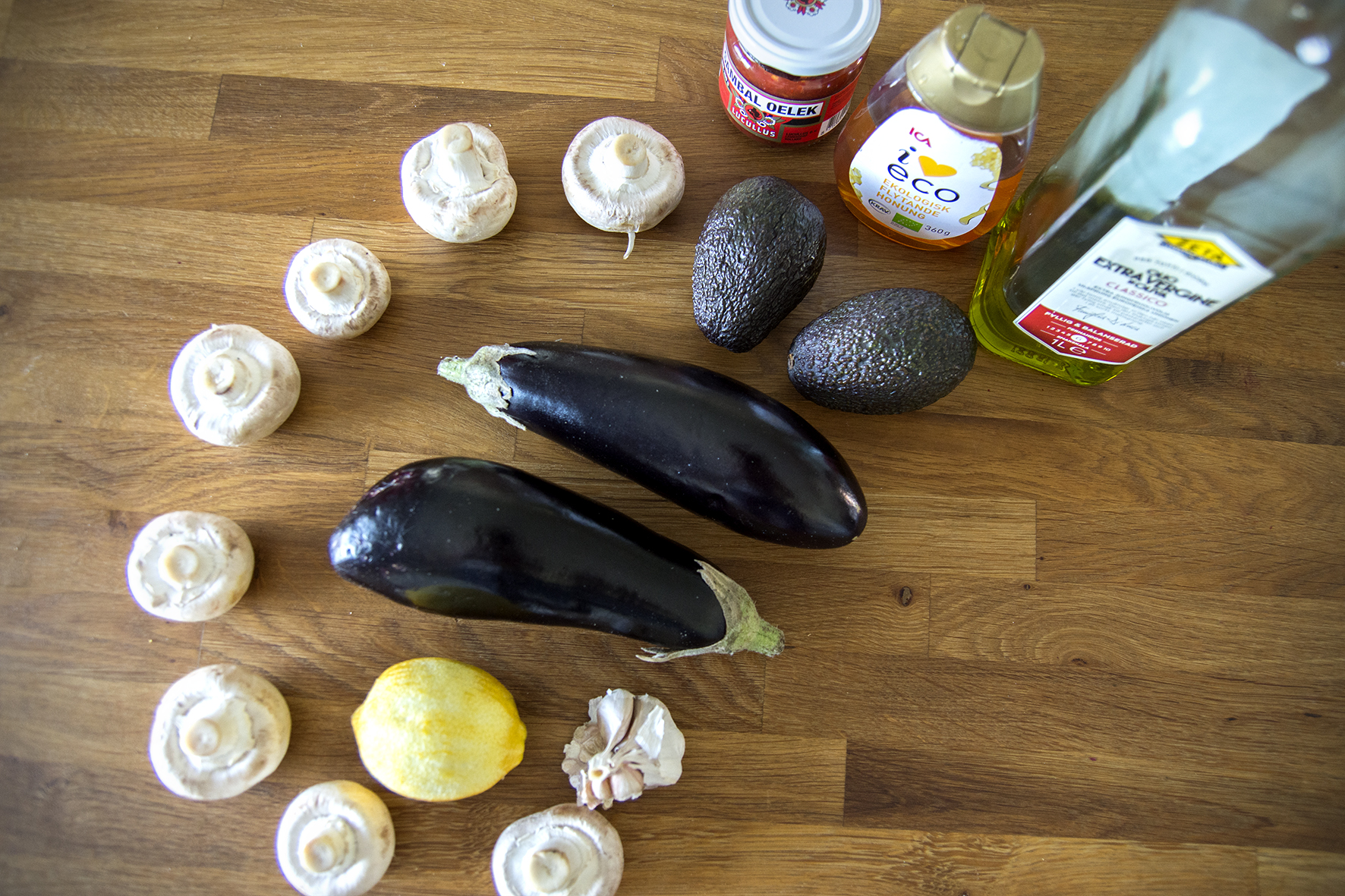 En sak händer alltid så snart temperaturen slår över 20-strecket. Grillsuget slår till med full kraft! Det stillade jag med aubergine och champinjoner i het marinad, som fick sällskap av mosad avokado, halloumiost och den där eviga Fantastisk sallad (nej, jag tröttnar aldrig).