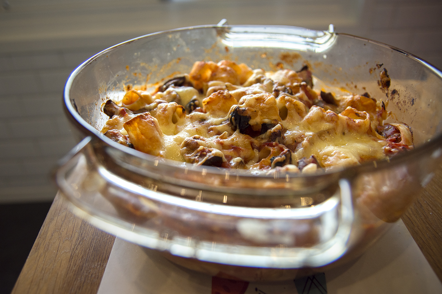Gratinera cirka 10-15 minuter, tills osten är gyllene. Servera med valfri grönsak.