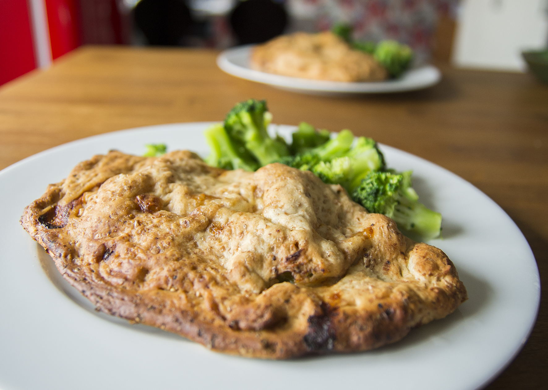 Mmm, Calzone med en massa läckert grönt innehåll i stället för läskig burkskinka. Jag gjorde ju pizza för rätt längesedan (nyårsdagen 2015) och skrev ett rätt dissigt inlägg om hur jobbigt det var. Tog mig an detta med en liten oro i bakhuvudet om att jag skulle tröttna halvvägs. Men kanske hade jag bättre dagsform nu? Det kändes lekande lätt, även om det naturligtvis tar lite tid med tanke på jäsningen. Väl värt väntan – här lär det bli Calzone snart igen!