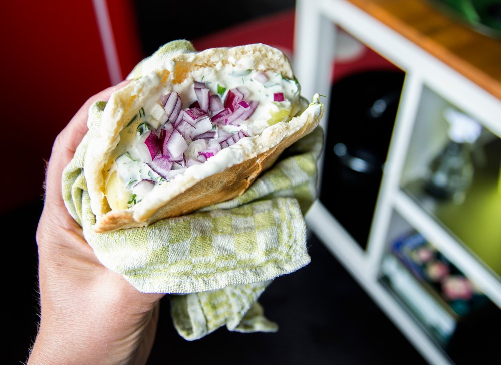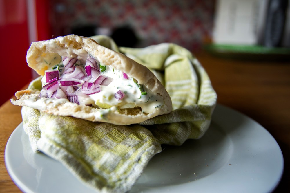 Värm pitabröden i brödrost (eller i ugn 3-4 minuter, 225 grader).