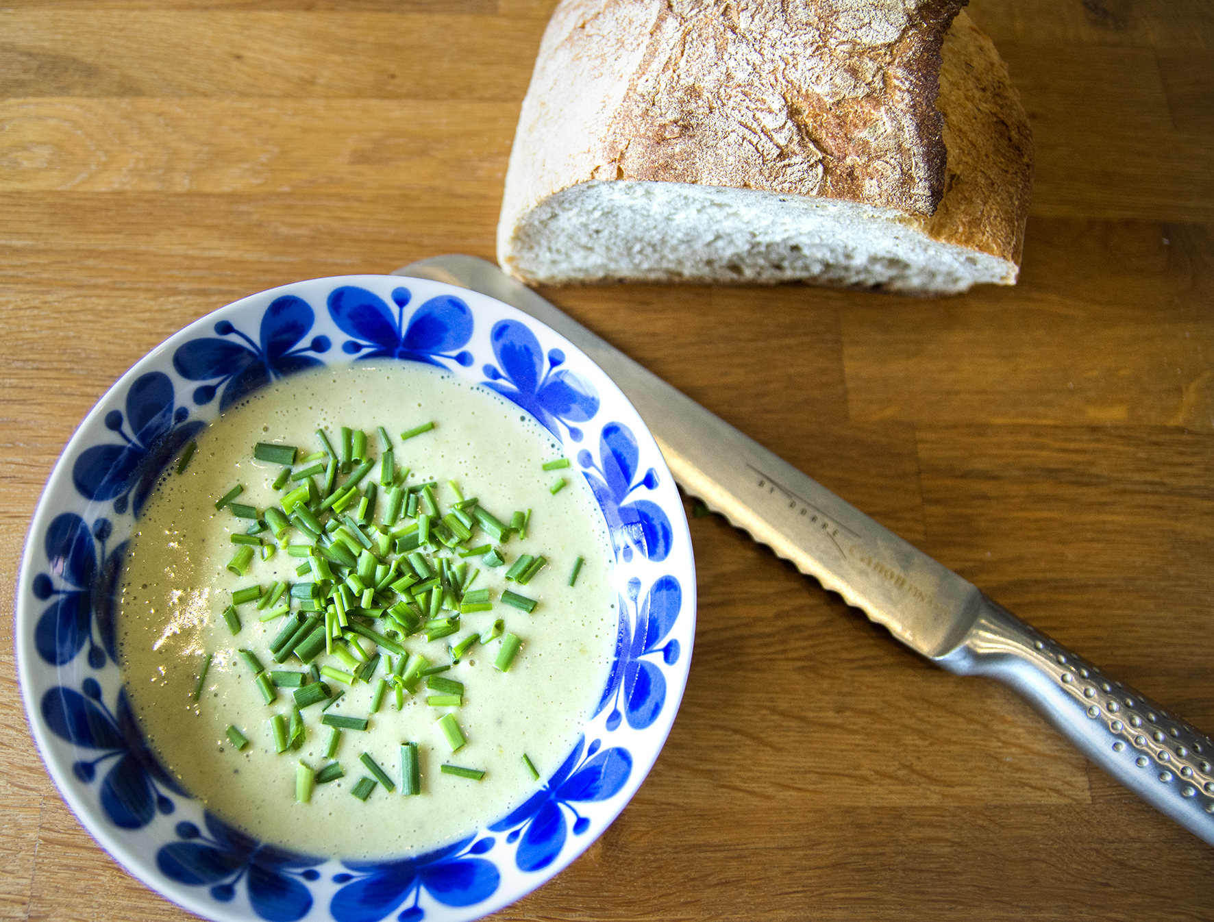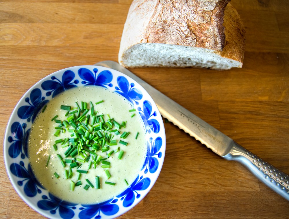 Den här soppan har ett lite förnämt namn på franska, Vichyssoisse [vishh-y-så-ass], men är väl lika känd här hemma för det mer jordnära potatis- och purjolökssoppa. Oavsett vad du kallar den är soppen väl värd att göra. God, lättlagad, smakrik. Servera varm, ljummen eller kall beroende på väderlek.
