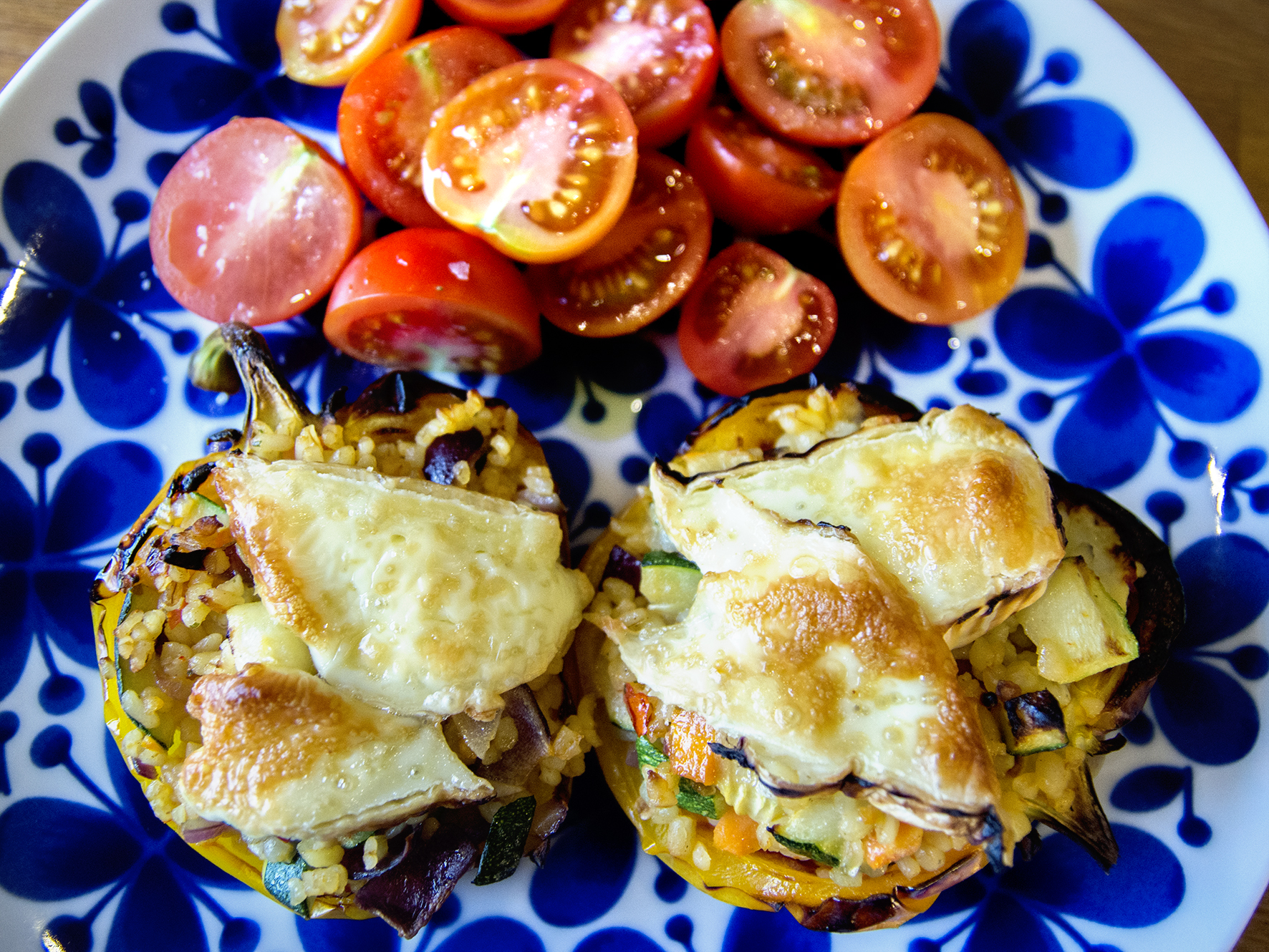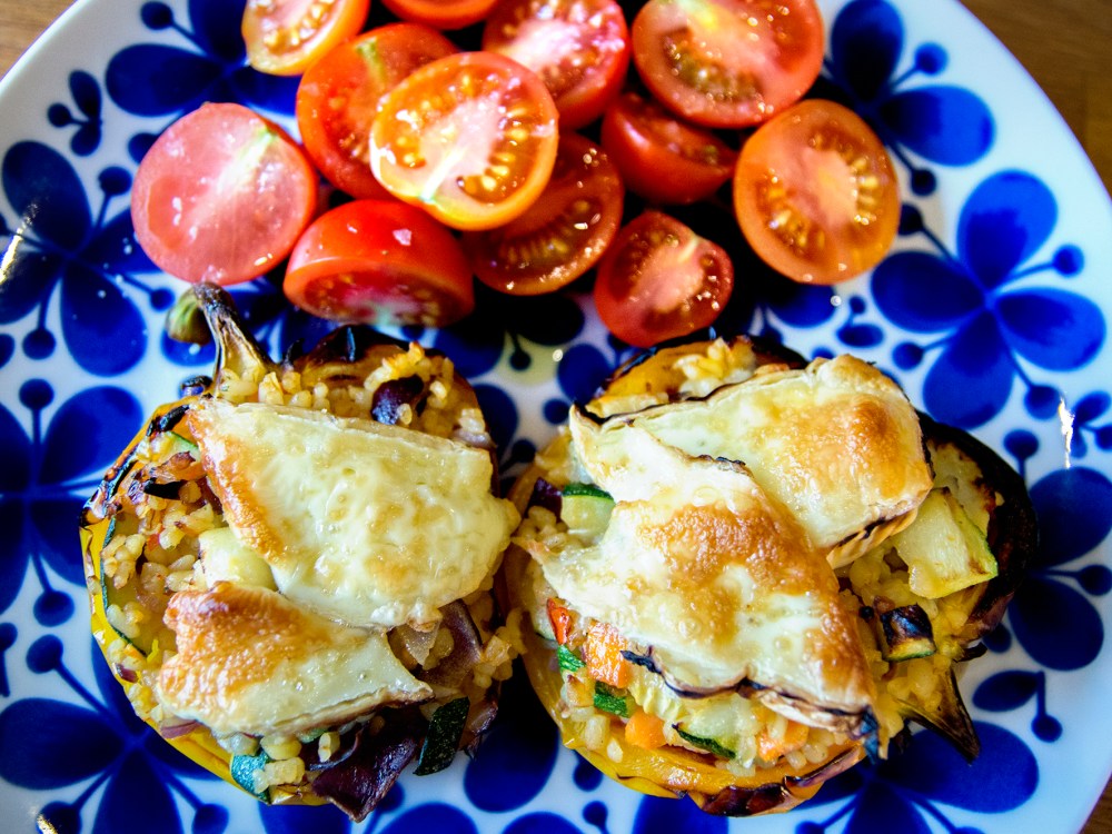 När jag letade runt efter matuppslag i ett anfall av idétorka hamnade jag på SVT och hittade ett recept på fylld paprika med brieost på toppen. Det lät ju toppen! Ädelost är något jag egentligen förknippar med finmat till helgen, men jag lagade detta en vanlig tisdag och det gick ju precis lika bra. Fyllningen är ganska mild men med fina smaker.