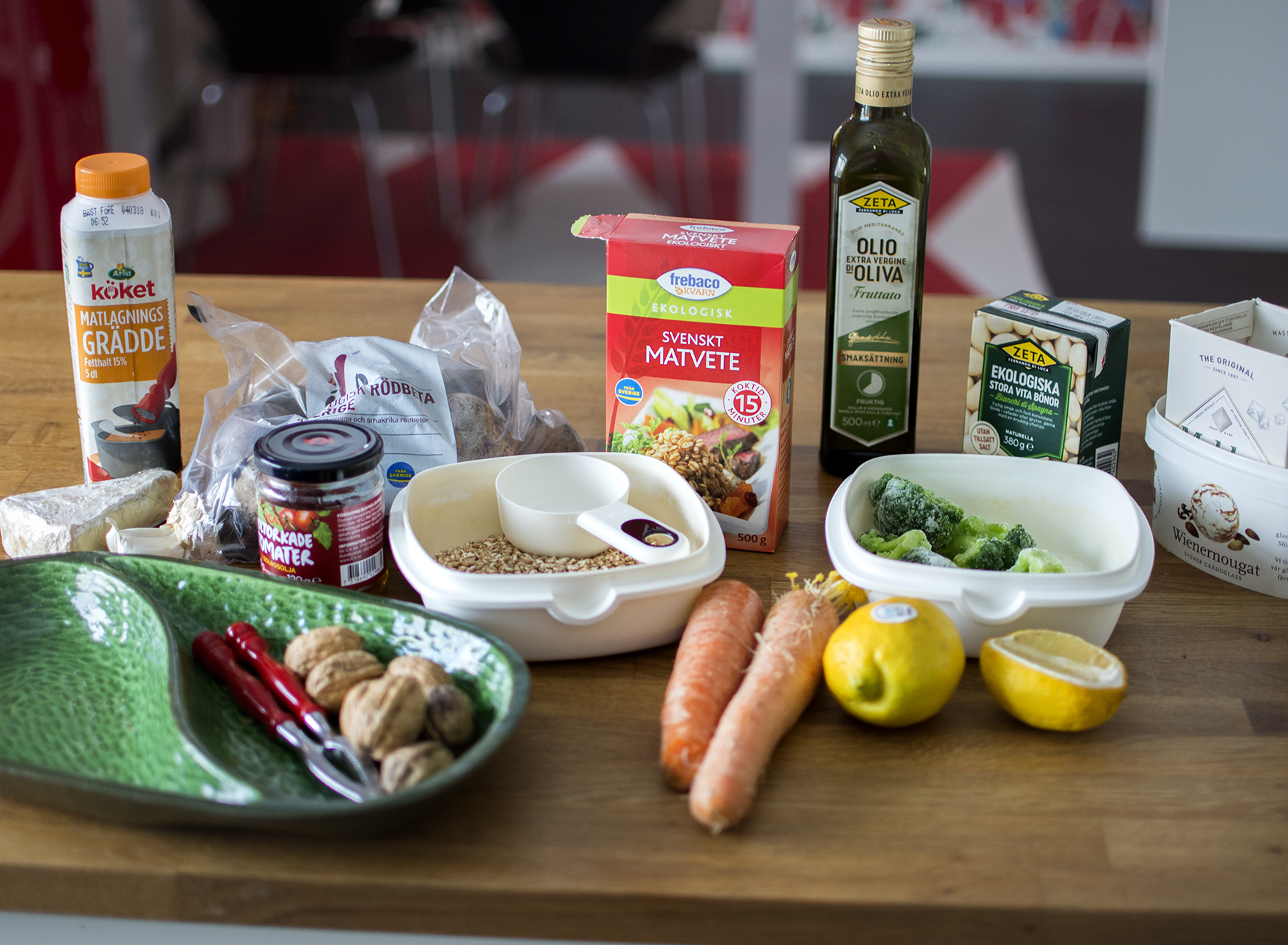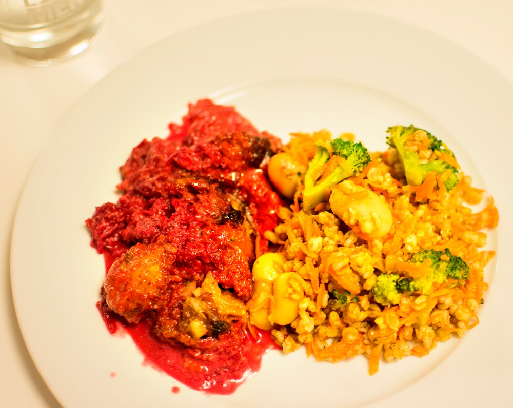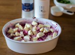 Det här är ännu en sådan där rätt jag svängde ihop av ingredienser som fanns i det som såg ut att vara ett tomt skafferi och kylskåp. Några valnötter från i julas, citron har vi alltid hemma, längst bak i skåpet fanns ett nästan bortglömt paket matvete, en vitmögelost, några rödbetor … Simsalabim: en smakrik matvetesallad med minst lika smakrik rödbetsgratäng! Passar finfint en kylig vinter dag!
