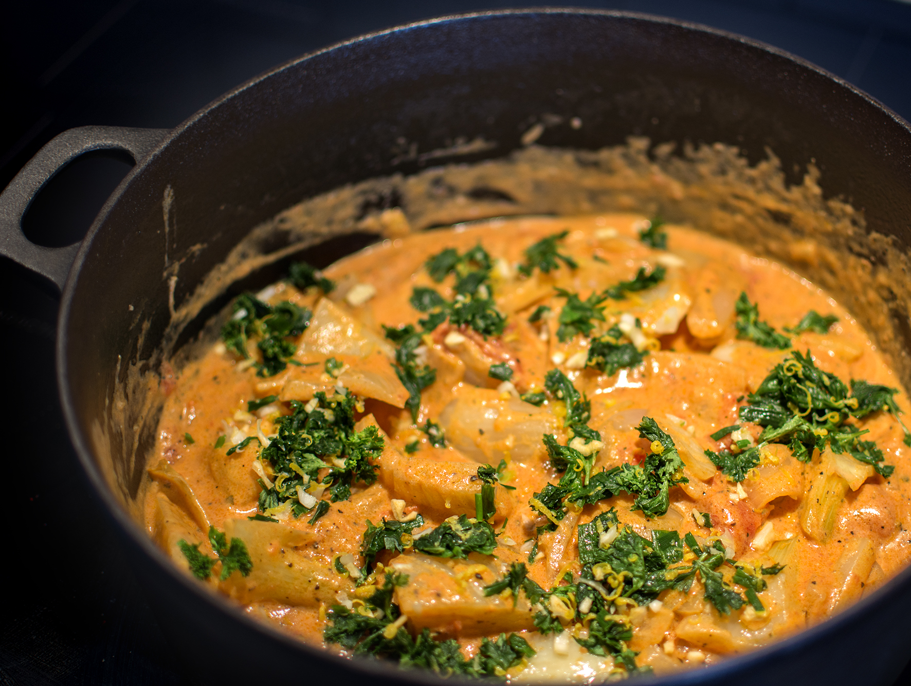 Gremolatan som toppar den rustika grytan gör det hela lite festligt, och känslan ökar när det vanliga gamla riset koks med saffran – ahh, doften! Njut i stilla ensamhet eller bjud nära och kära – kanske till påsk?