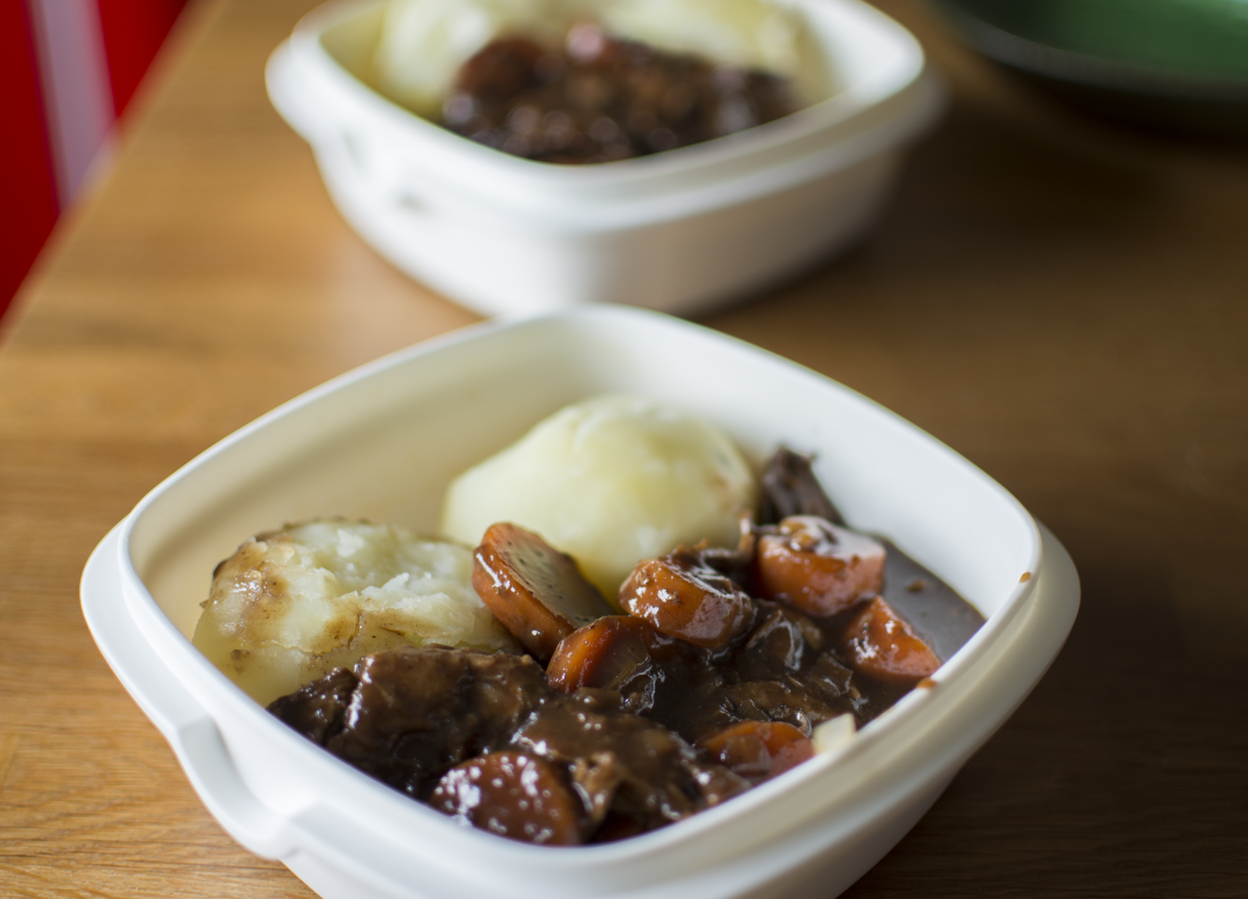 Servera kalopsen med kokt potatis och inlagda rödbetor. (Min åkte rakt i matlådan den här gången.)