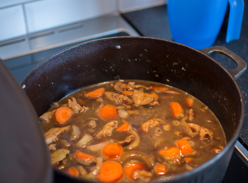 Tillsätt mer vatten om grytan är för torr. Smaka av med salt och peppar.