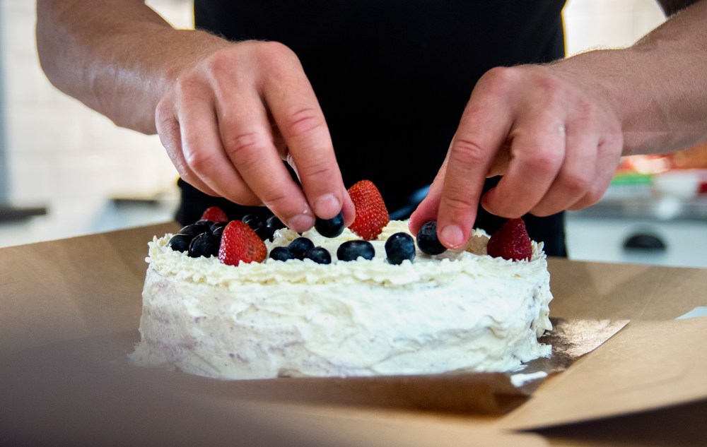 Dags för dekoration! Se till att alla bär är torra, grädde och vatten blir en sorglig syn och när du kommit så här långt är det trist att falla på målsnöret. Utseendet ÄR viktigt, åtminstone på bakverk.