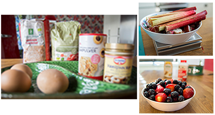 Fortsätt med fyllningen. Skölj rabarber, amerikanska blåbär och jordgubbar. Torka dem noga.