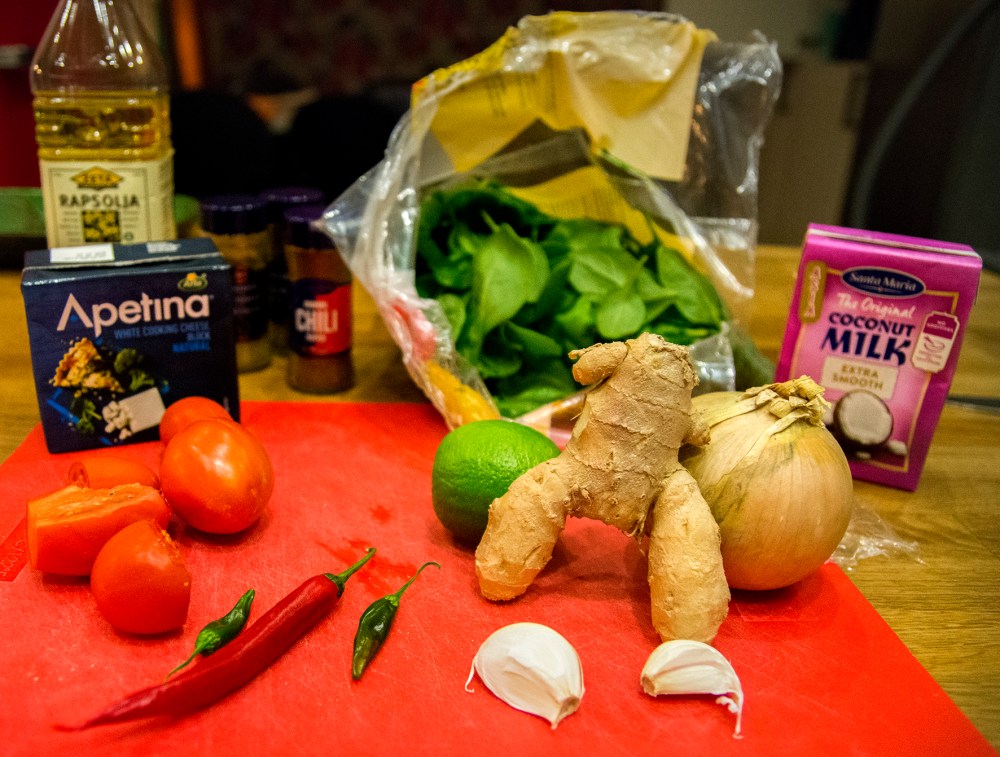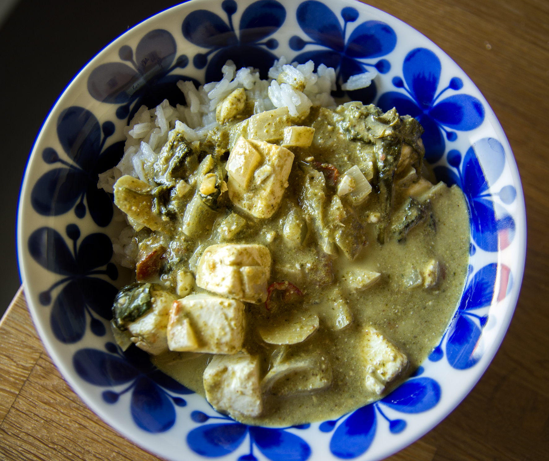 I tisdags handlade vi igen. Det flöt på, jag plockade ner spenat och ingefära och tog raskt sikte mot ostdiskarna. Där blev det stopp. Ingen paneer från Apetina stod att finna. Däremot fanns något som heter vitost i en mängd varianter, från samma märke. Vi frågade och det visade sig att denna nyhet skulle komma till vår butik följande dag. Aha. Okej. Vi åkte hem med bara nästan allt från listan.