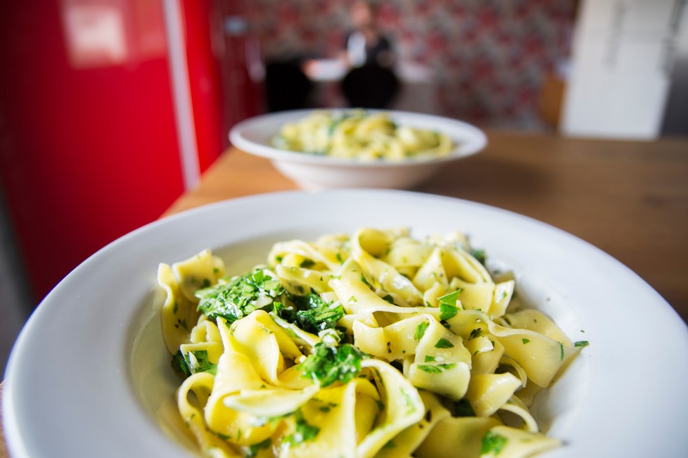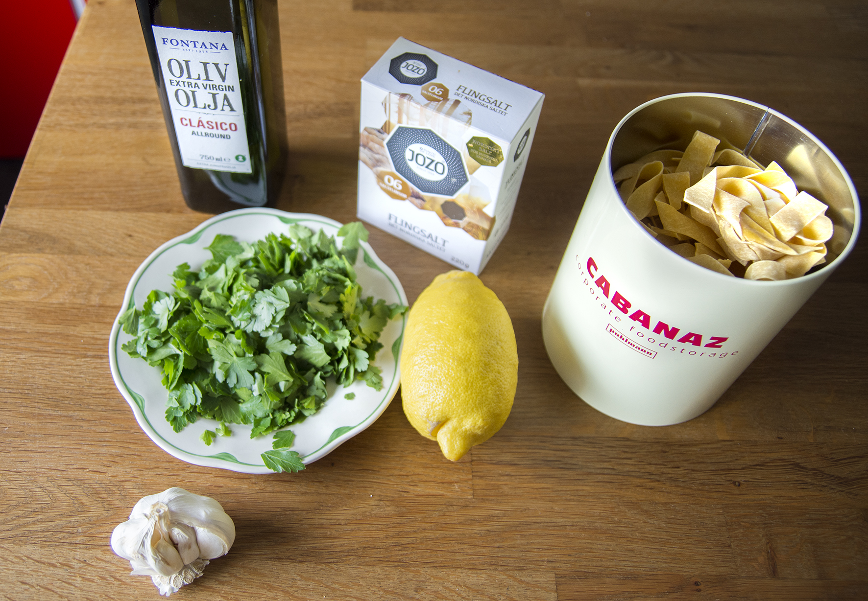 Funderade lite på vad jag skulle göra med den. Kom att tänka på gremolata, som ju är en härlig röra som passar på det mesta. Men en så given sak måste jag väl ha gjort till bloggen redan? Nähä! Bot och bättring – här kommer min variant som jag serverade som en snabb lunch tillsammans med nykokt pasta.