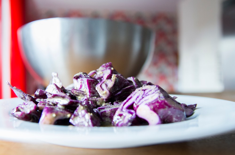 Kom på ett lätt sätt att få bukt med det här: en marinerad rödkålssallad som är så god att det inte ens märks att den är nyttig. Går att göra på ett kick och håller upp till en vecka i kylskåp, så det går inte ens att skylla på tidsbrist. (Och det går självklart att göra med vanlig vitkål, men då missar du den läckra färgen.)