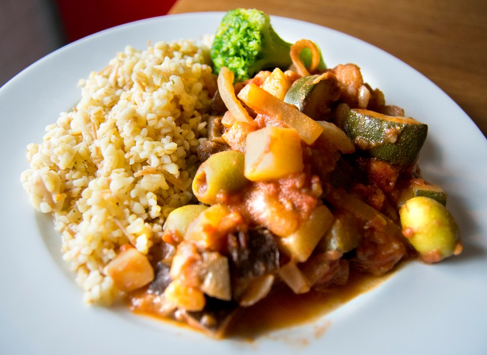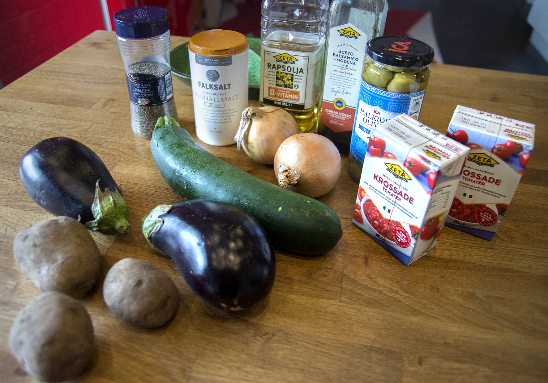 Det här är en rätt inspirerad av något som ICA kallar ”Khaleet – syrlig libanesisk ratatouille”. Själv kallar jag den Libanesiskt gryta, eftersom jag tycker att den har väldigt lite med ratatouille att göra men däremot funkar fint som en vardagsgryta. (Är du sugen på en riktigt god ratatouille kan jag rekommendera detta recept.)