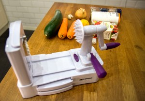 Förra året var jag tydligen snäll för i tomtens säck fanns något jag önskat: en grönsakssvarv. Åh, vilka möjligheter som öppnas! Ingen risk för blodvite, bara att trycka fast grönsaken och svarva på. Och spiraler av morötter, zucchini, gurka och så vidare kan ju förvandla vilken vardaglig rätt som helst till något lite roligare. Det behövs i januari.