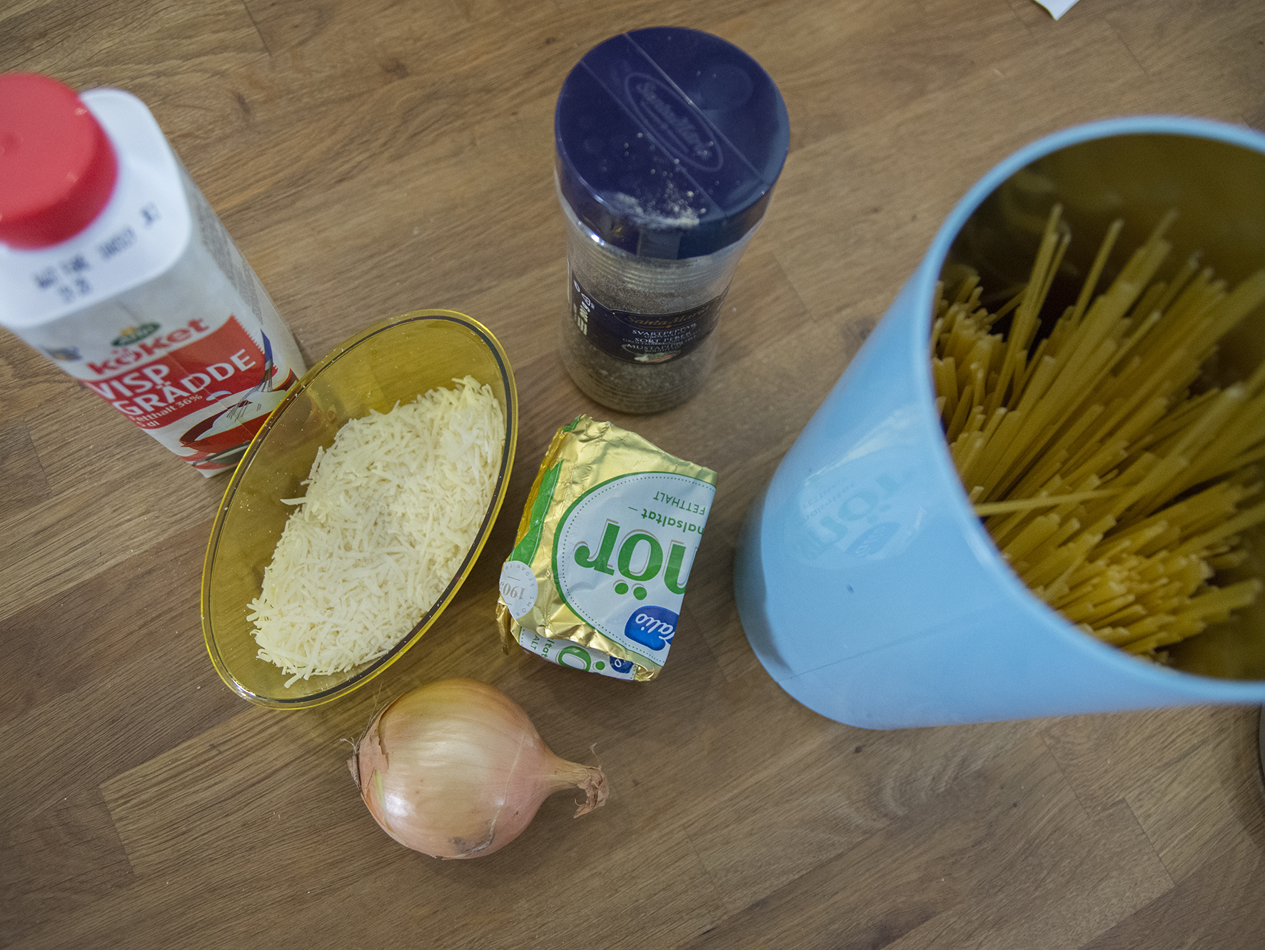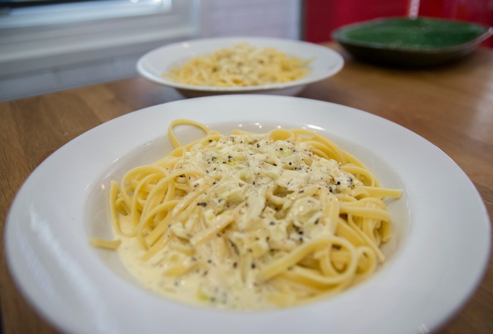 När jag nu testar att laga det själv kan jag konstatera att smaklökarna vuxit till sig. Det är inte så att jag golvas, men Alfredo är ändå helt okej. Och ett stort plus är att de få ingredienserna och den supersnabba tillagningen. Snabbmat på italienska, för cyklister och andra.