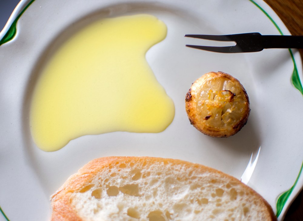 Ibland går jag och drömmer om mat. Ganska ofta faktiskt. Om sådant jag ätit, om sådant jag hört talas om men inte hunnit prova. Dagens förrätt hör till den andra kategorin. För flera år sedan pratade en bekant om en ugnsbakad vitlök hon fått på restaurang men som hon inte riktigt visste hur kocken tillagat, bara att den var så himla god.