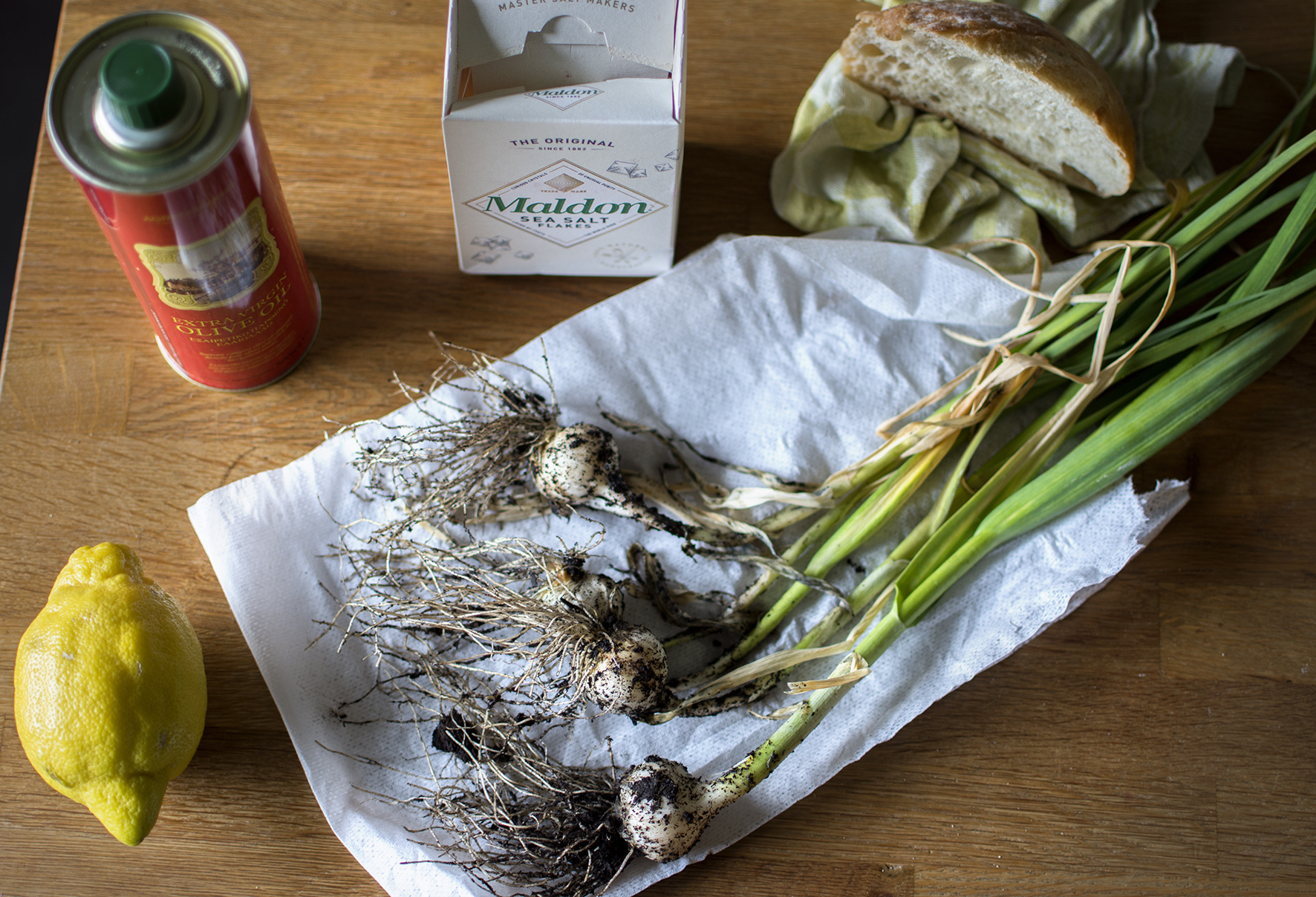 Gnid in vitlökarna i olivolja. Strössla över flingsalt och saft och skal från citronen. Avsluta med några droppar olivolja till.