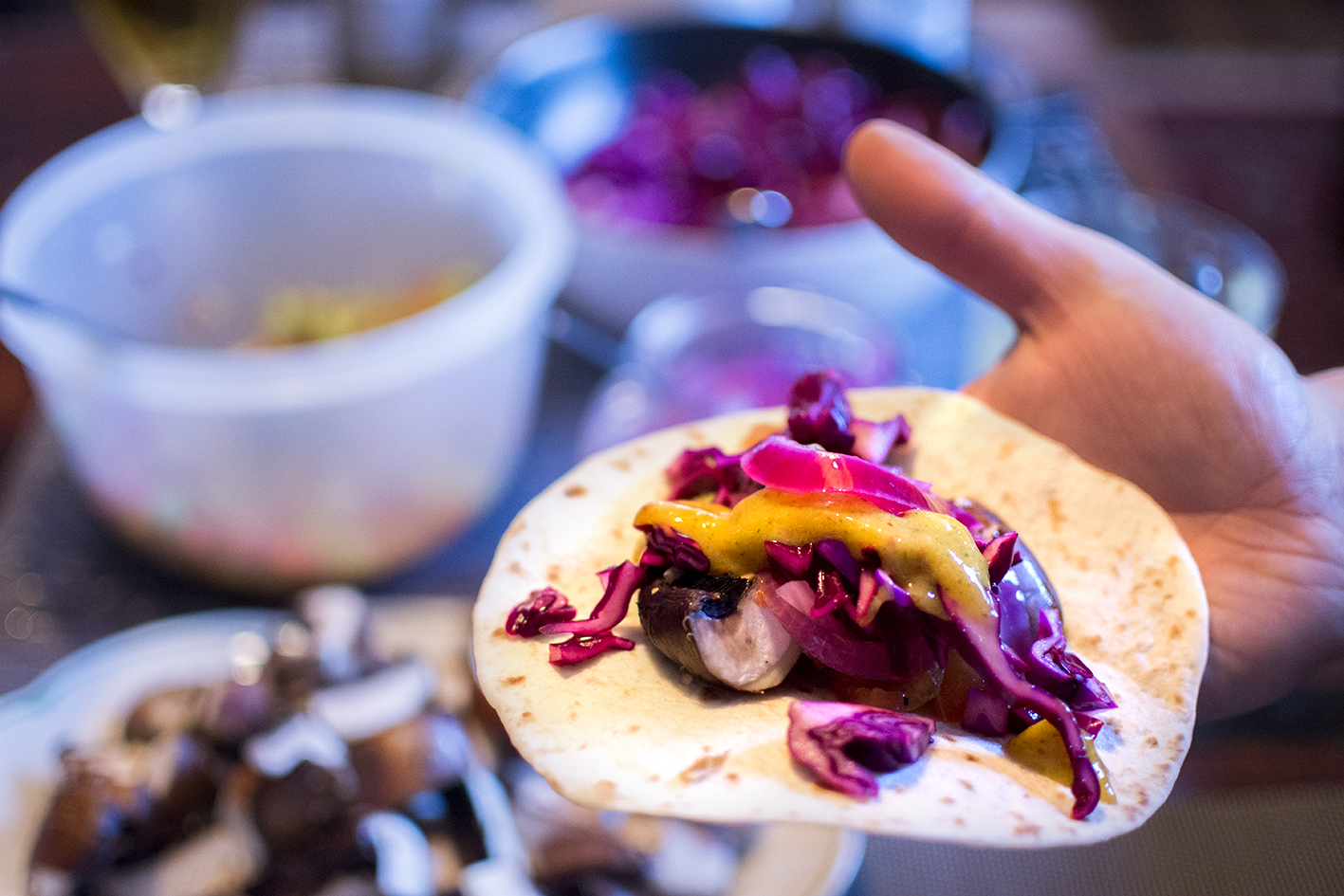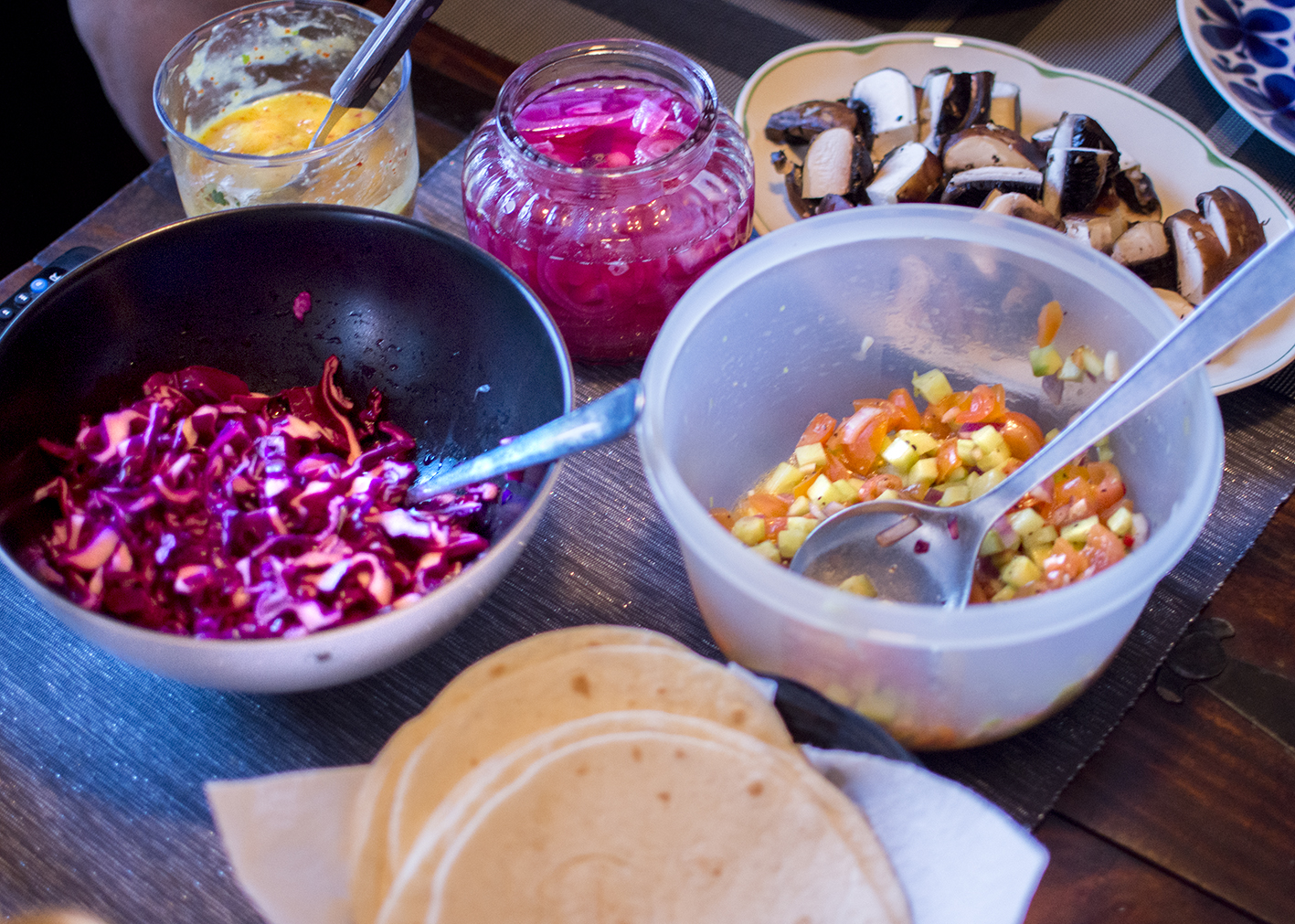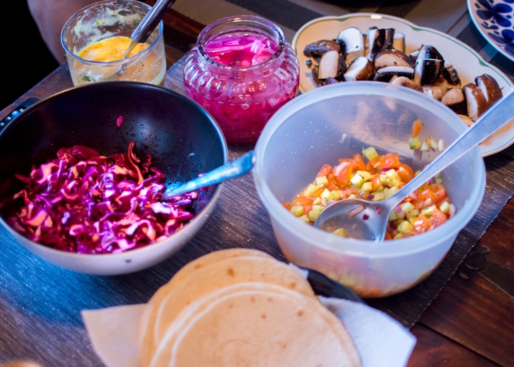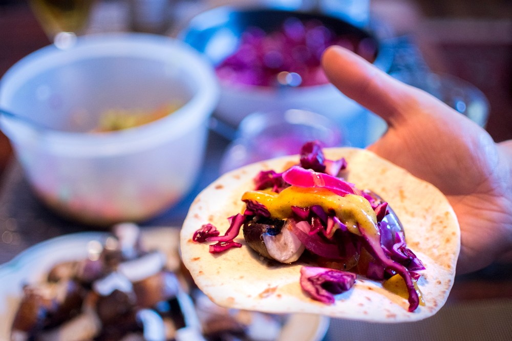 Tacos på fredag? Testa den här varianten, med saftig portabellosvamp och smakrika tillbehör som mangosås och picklad rödlök för att nämna ett tvåtal. Glöm inte att ta fram en stor rulle hushållpapper när du dukar fram och avboka gärna alla former av blind-dejts den närmsta veckan (ja, rätten innehåller en del vitlök!).