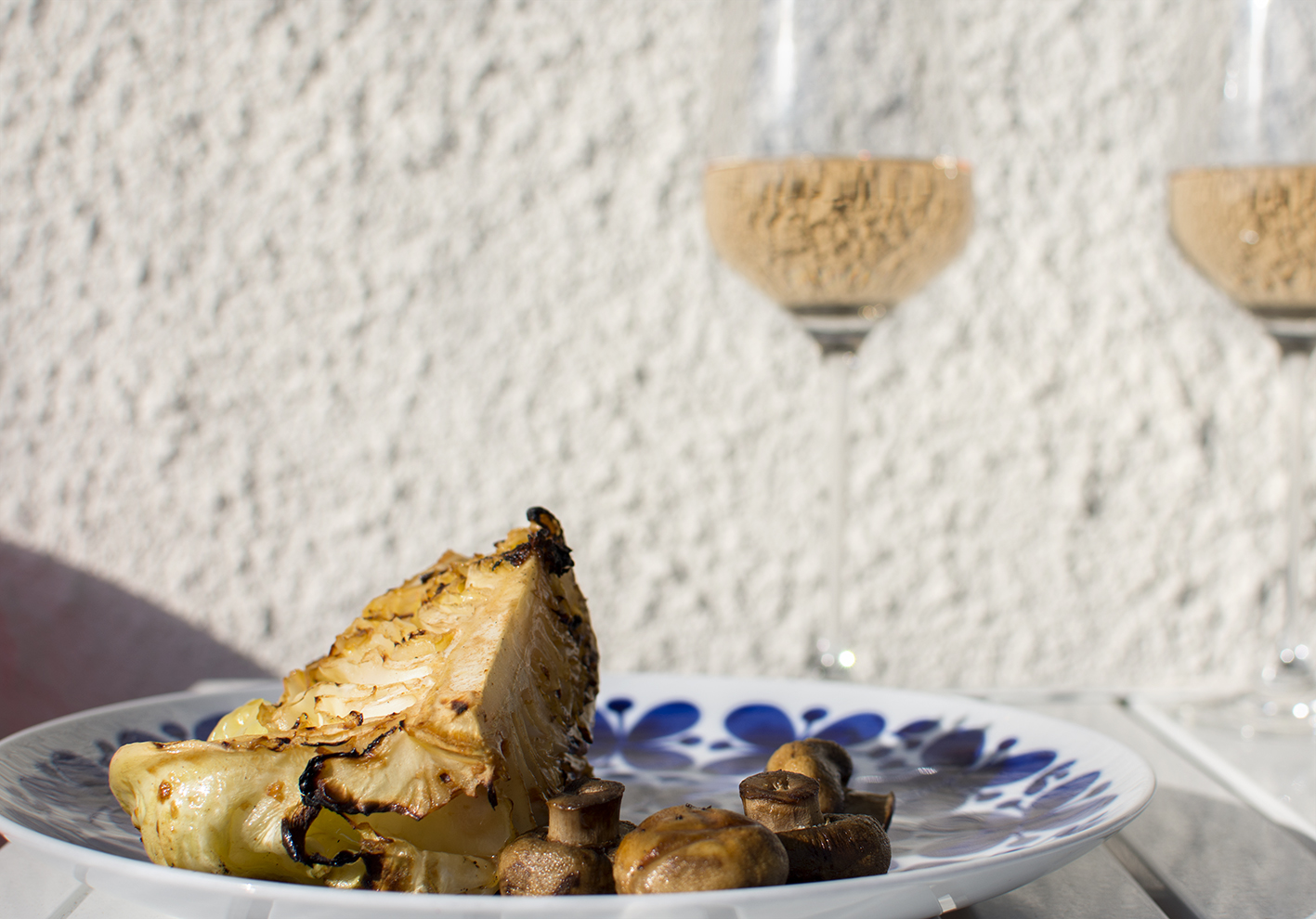 Lägg kålbitarna på hushållspapper så att det mesta av oljan droppar av. Värm på grillen. Lägg på direkt värme tills kålen fått fina grillränder. Flytta till indirekt värme i cirka fem minuter till. De får lite tuggmotstånd, men det är bara gott tycker jag.