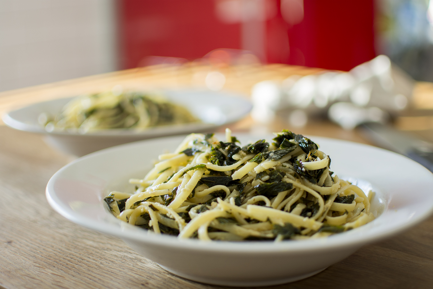 Häll i pastan och rör ihop allt. Smaka av med salt och tillsätt mer citronsaft och olja om det behövs.