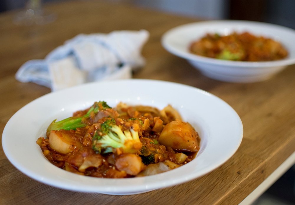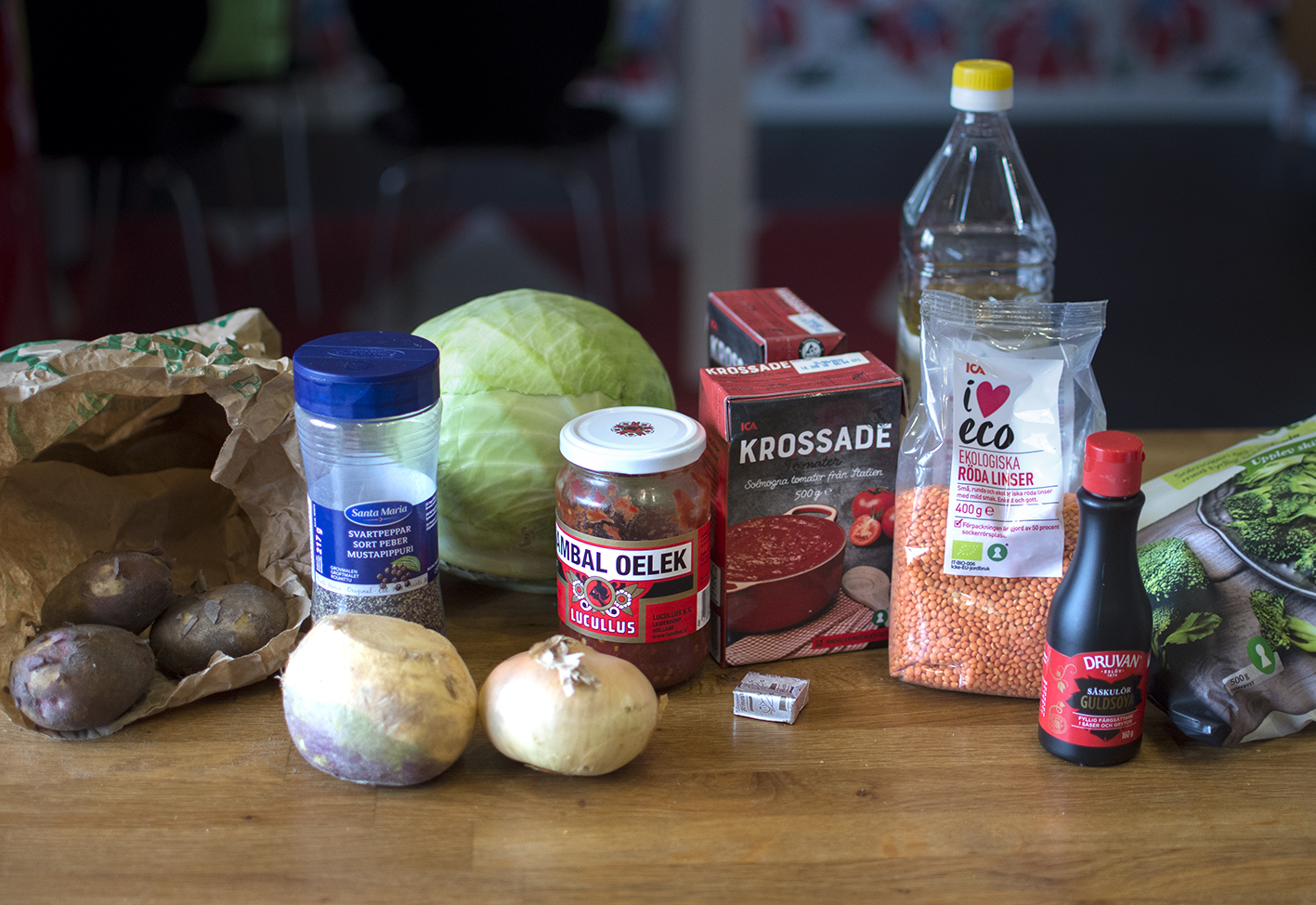 Den här gången tog jag mig an matlagningen med väldigt låga förväntningar. Den här grytan hade till uppgift att mätta oss en vardag, vara nyttig, inte kosta skjortan (inspirationen kommer från eminenta Portionen under tian). Men med bland annat potatis, linser, kålrot som bas var ”smakfest” inget krav.