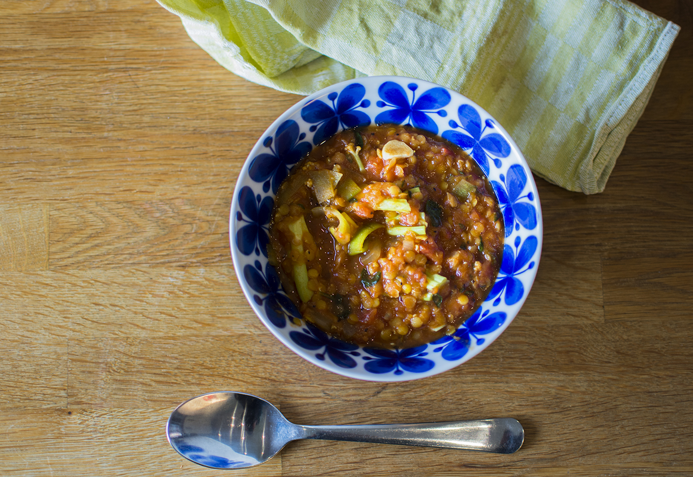 Tillsätt linserna och låt grytan sjuda i tio minuter.
