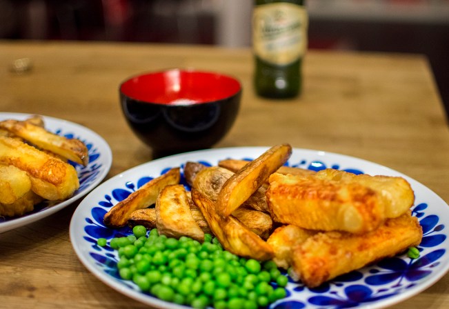 I dag har jag gjort en variant på den brittiska klassikern Fish ‘n Chips. Men i den vegetariska varianten byter jag ut friterad fisk mot en närproducerad grillost från Dalsland.