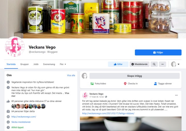 Du hittar sidan genom att följa länken eller genom att söka på @veckansvego