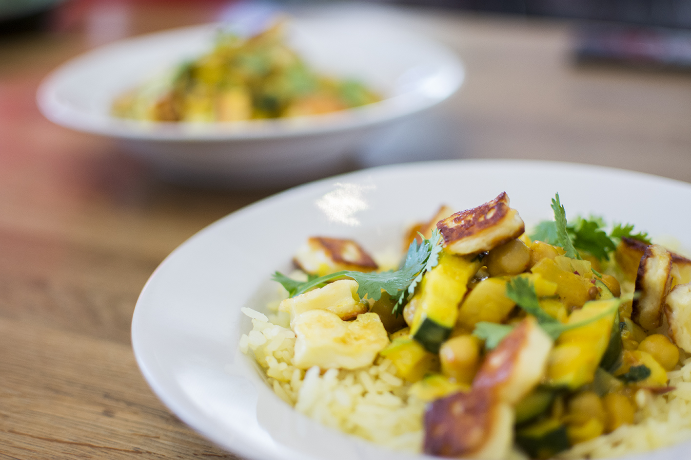 Currygrytor kan varieras i det oändliga, det är väl kanske lite som Indiens svar på pyttipanna. Den här gången använde jag kikärtor som bas och toppade med närproducerad grillost från Dalsspira. En vinnande kombo!
