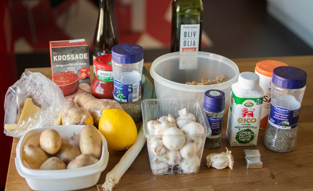 Övrigt: cirka 2 deciliter smakrik riven ost att toppa med