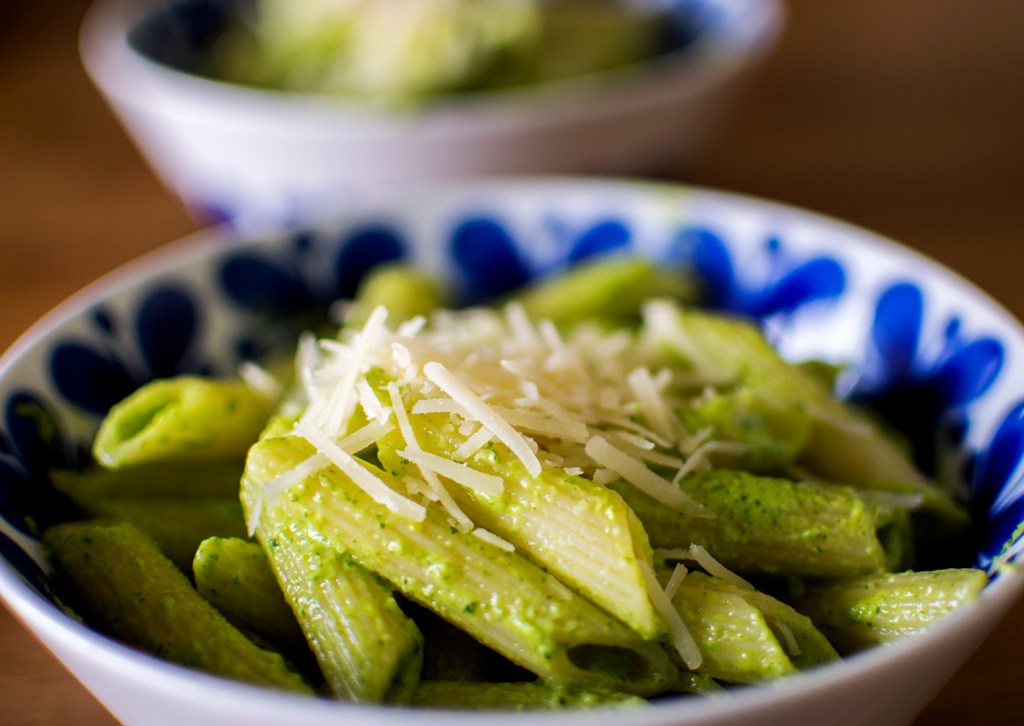 Peston kan användas på en mängd sätt, toppa pizzan, bre på en skiva surdegsbröd, dippa grönsaker …. Jag valde att röra ner ett par deciliter i två portioner nykokt pasta och strössla på lite parmesan. Supergod snabbmat!