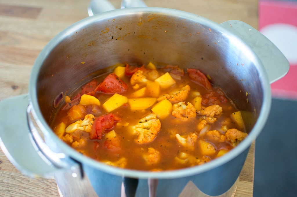 Låt koka tills allt mjuknat. Ta kastrullen från värmen.