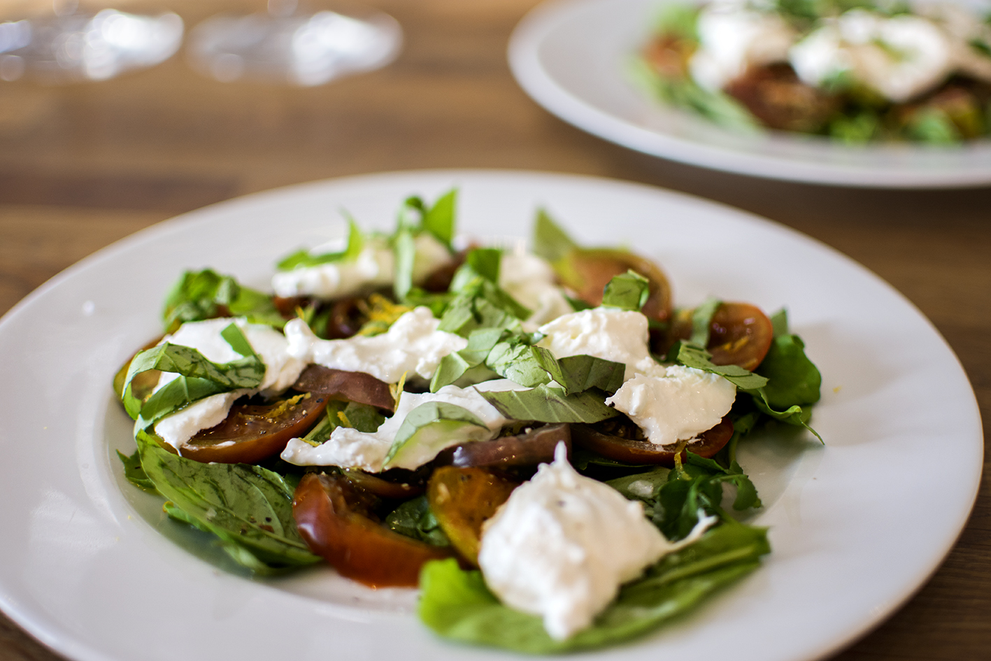 Jag har länge varit sugen på att testa burrata, denna mozzarellans lyxiga kusin från stan. Nu blev det äntligen av, och det i form av en förrätt med smaker som inte gör någon besviken! Eller vad sägs om solmogna tomater, citronzest (såklart!) och generöst med basilika och ruccola som sällskap till den lena osten?