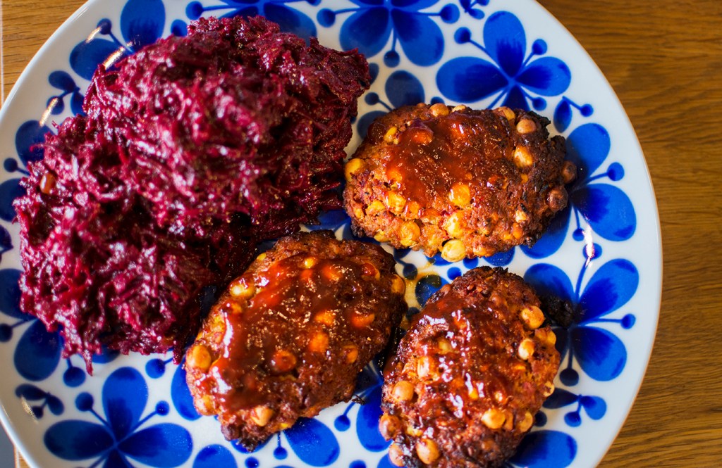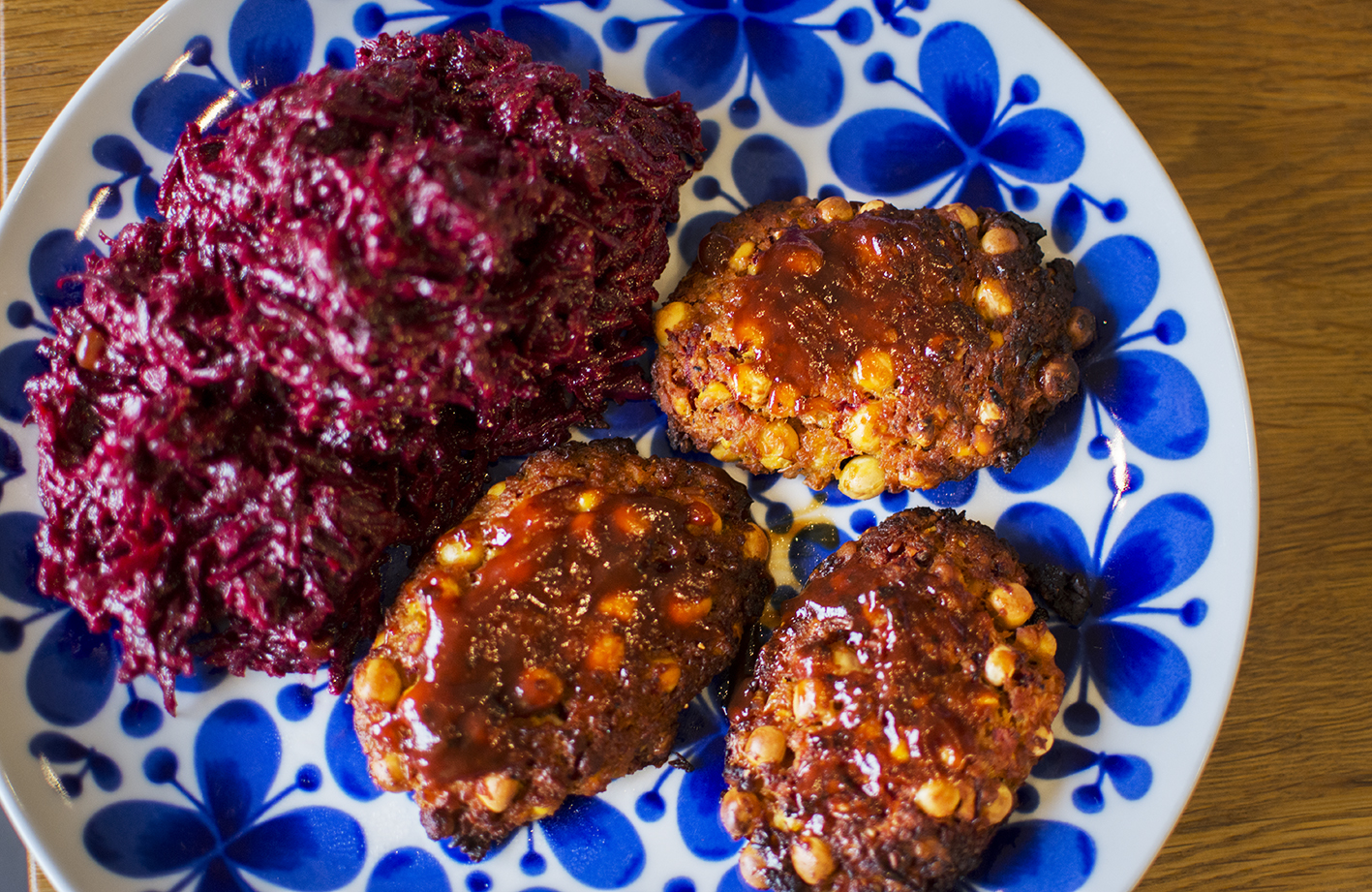 Jag snodde ihop en enkel råkost på rödbeta och senapsmarinad till.