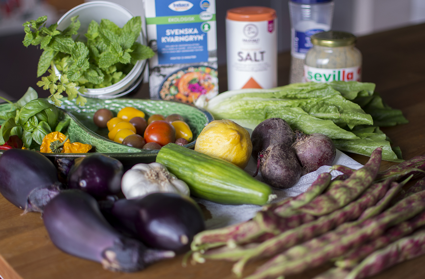 Dags att sammanfatta årets mödor i trädgården i en enda maträtt. Jag har tidigare gjort grytor och sallader med mina skördar från pallkragar och krukor (kolla här, här och här).