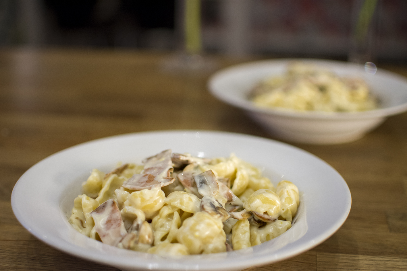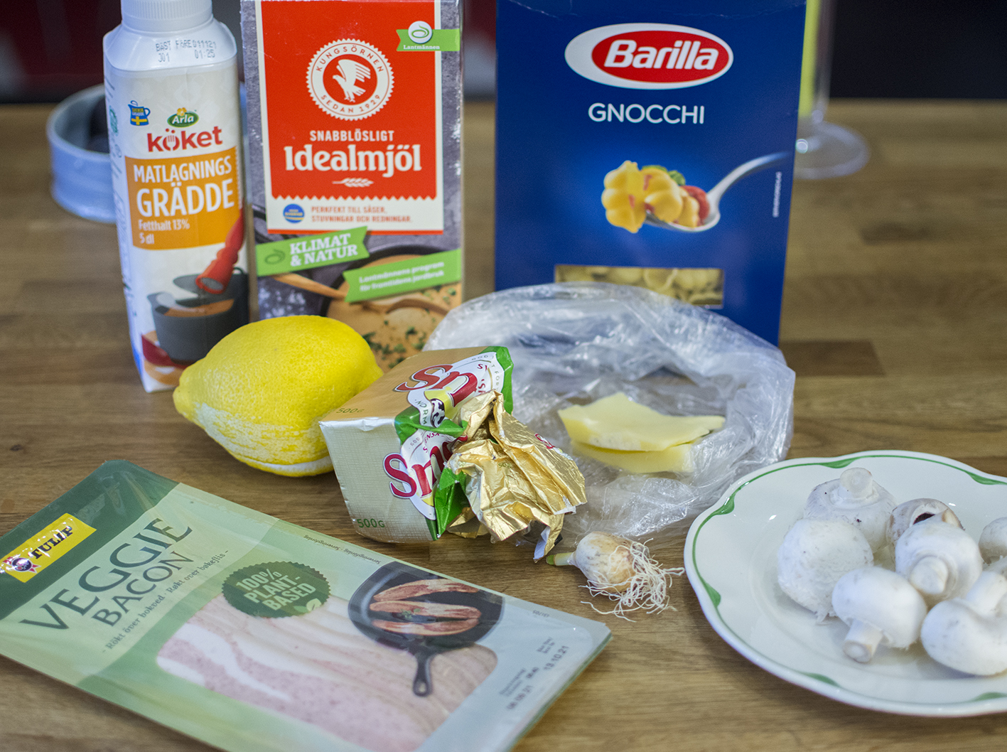 Då var det dags för tredje och sista veckan med fejkonbaserade rätter. Finalen blev en mättande pasta med Tulips veggie-bacon och svamp i en gräddig sås. Pust. Orkade knappt resa mig efteråt!
