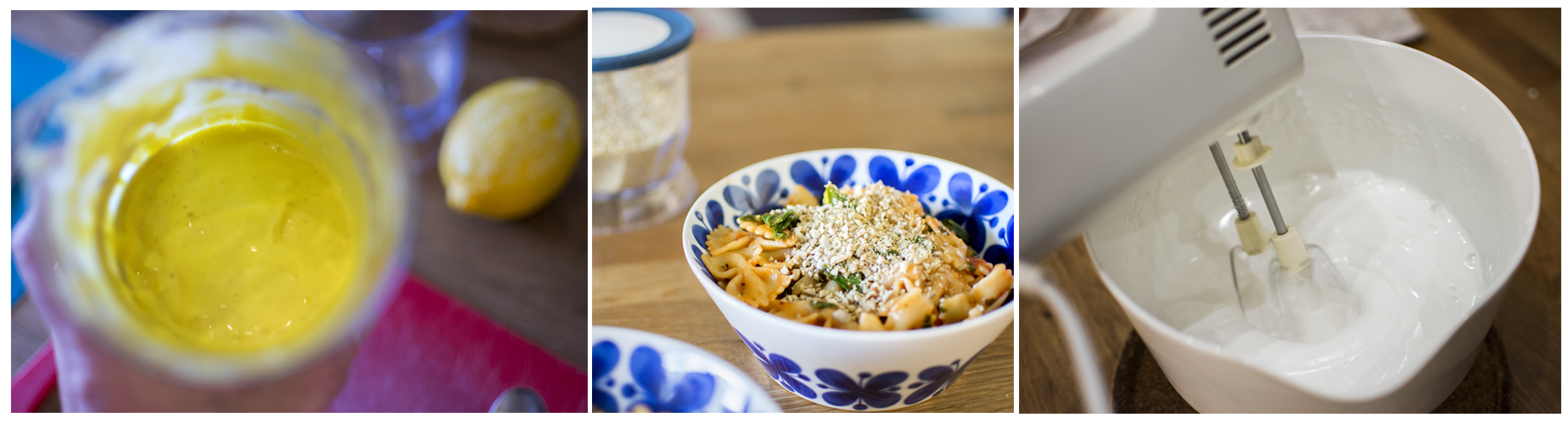 Men i dag tänkte jag borra lite djupare och omvandla tre matvaror: majonnäs, parmesanost och maräng, helt utan animaliska råvaror! I två recept ersätter kikärtsspad ägg, helt smärtfritt (bokstavligt och bildligt talat) och i det tredje är det näringsjäst som ser till att ostsmaken sitter (även om den här varianten ärligt talat inte lurar någon att tro att det är ”riktig” parmesan).