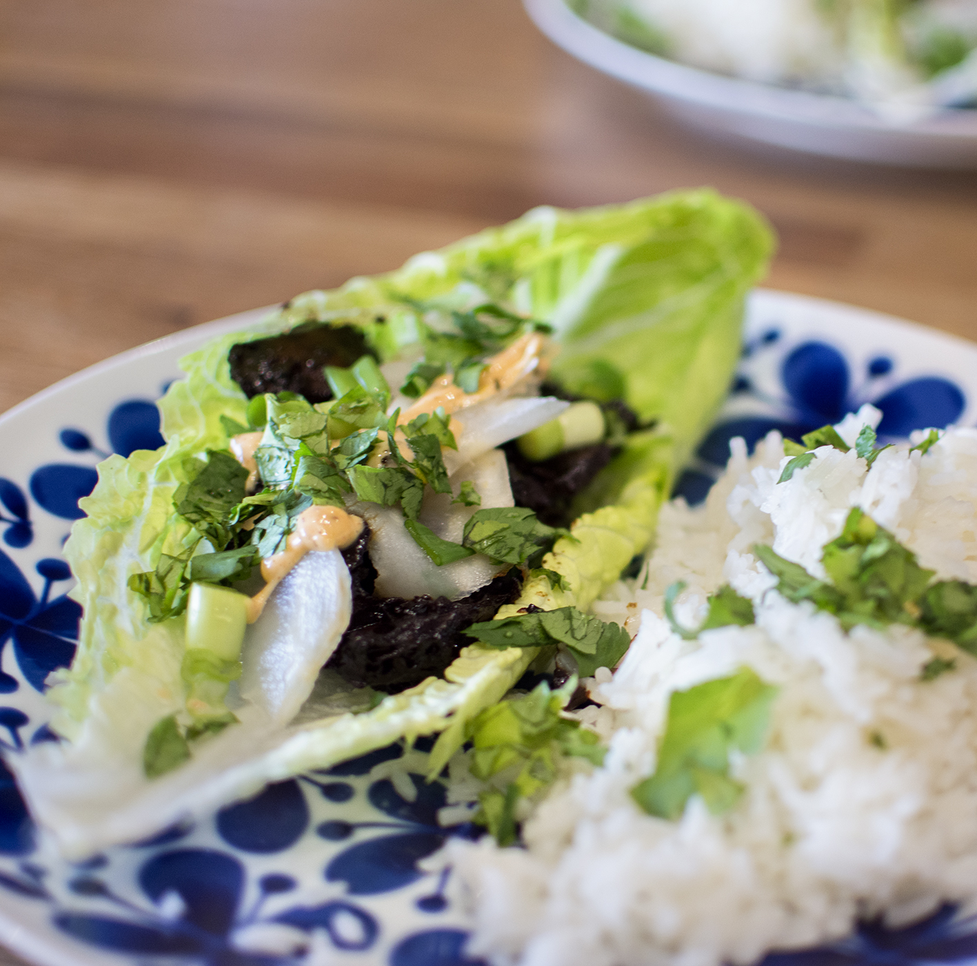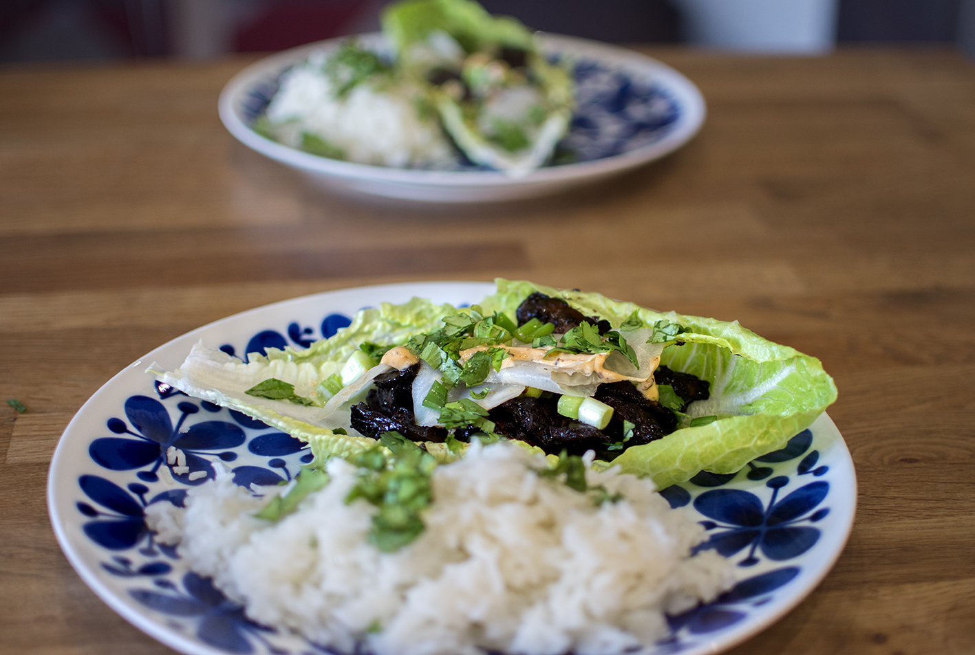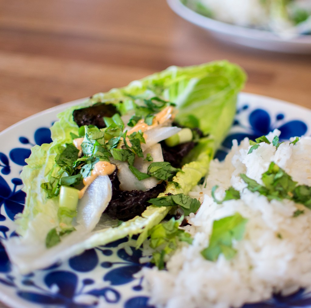 Att äta sin mat ur ett salladsblad – vilket enkelt sätt att få en rätt att lyfta från bra till underbar. Tidigare exempel från min blogg är Salladsbåt från 2017 och förrätten Ssäm bulgogi som jag gjorde till min senaste trerätters nyårsmeny.