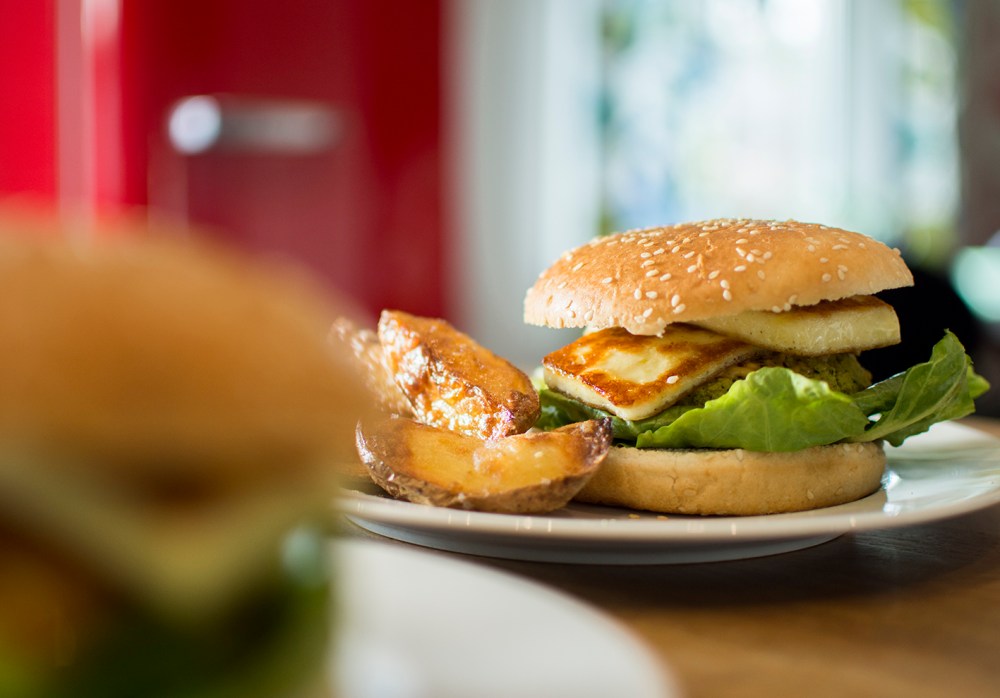 Årets första vegoburgare har landat! Den är gjord på gula linser, smaksatt med vitlök och citronzest och får extra smakskjuts av grillost från Dalsspira. Jag serverade dem med ugnsbakade potatisklyftor. Mums, för att sammanfatta.