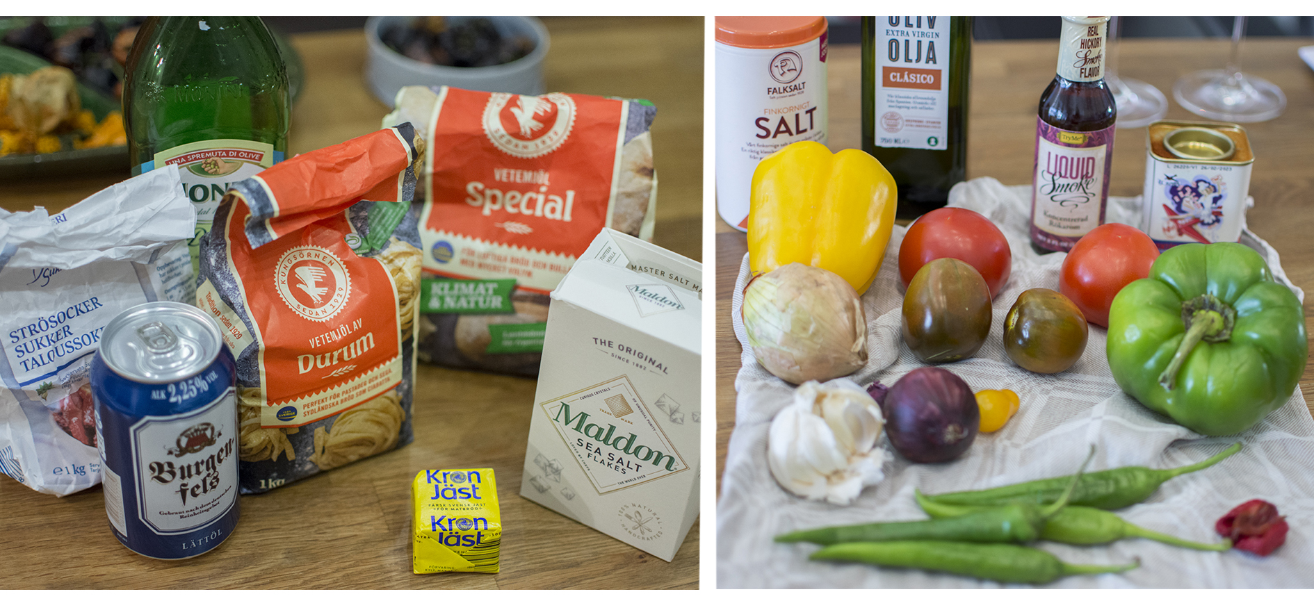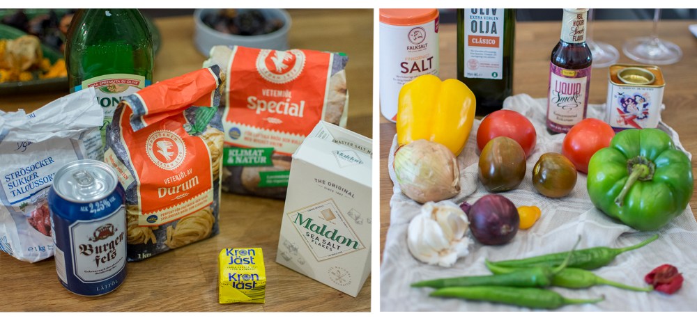 Gör degen under tiden. Värm vattnet till cirka 37 grader (fingervarmt). Häll lite av det i en degbunke och rör ut jästen. Tillsätt resten av vattnet, öl, socker, salt och olja och blanda väl. Rör i durumvetemjölet och pytsa i vetemjöl special tills du arbetat fram en smidig och elastisk deg. Låt jäsa i cirka 30 minuter.