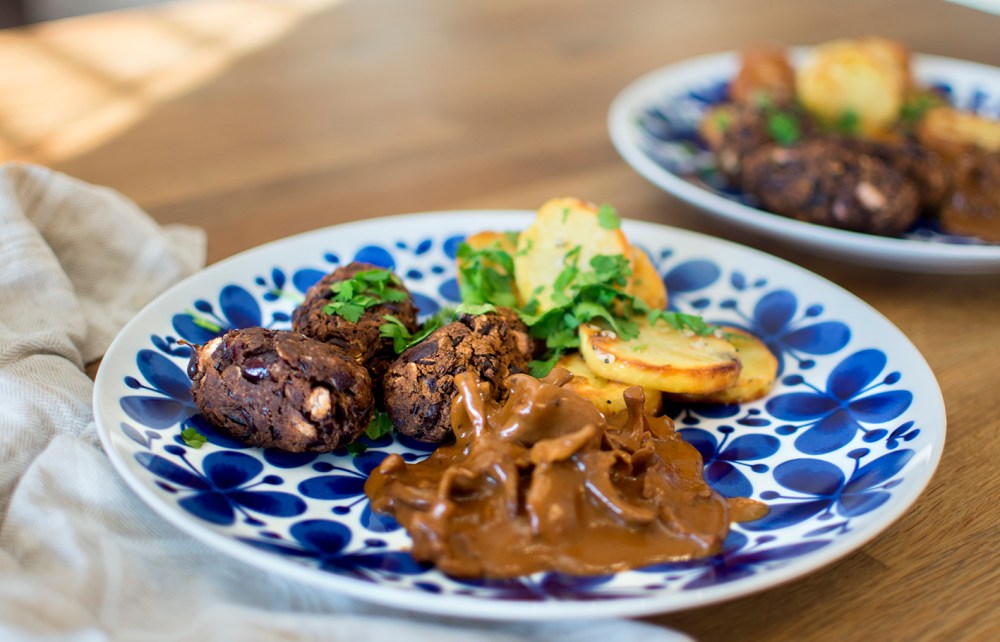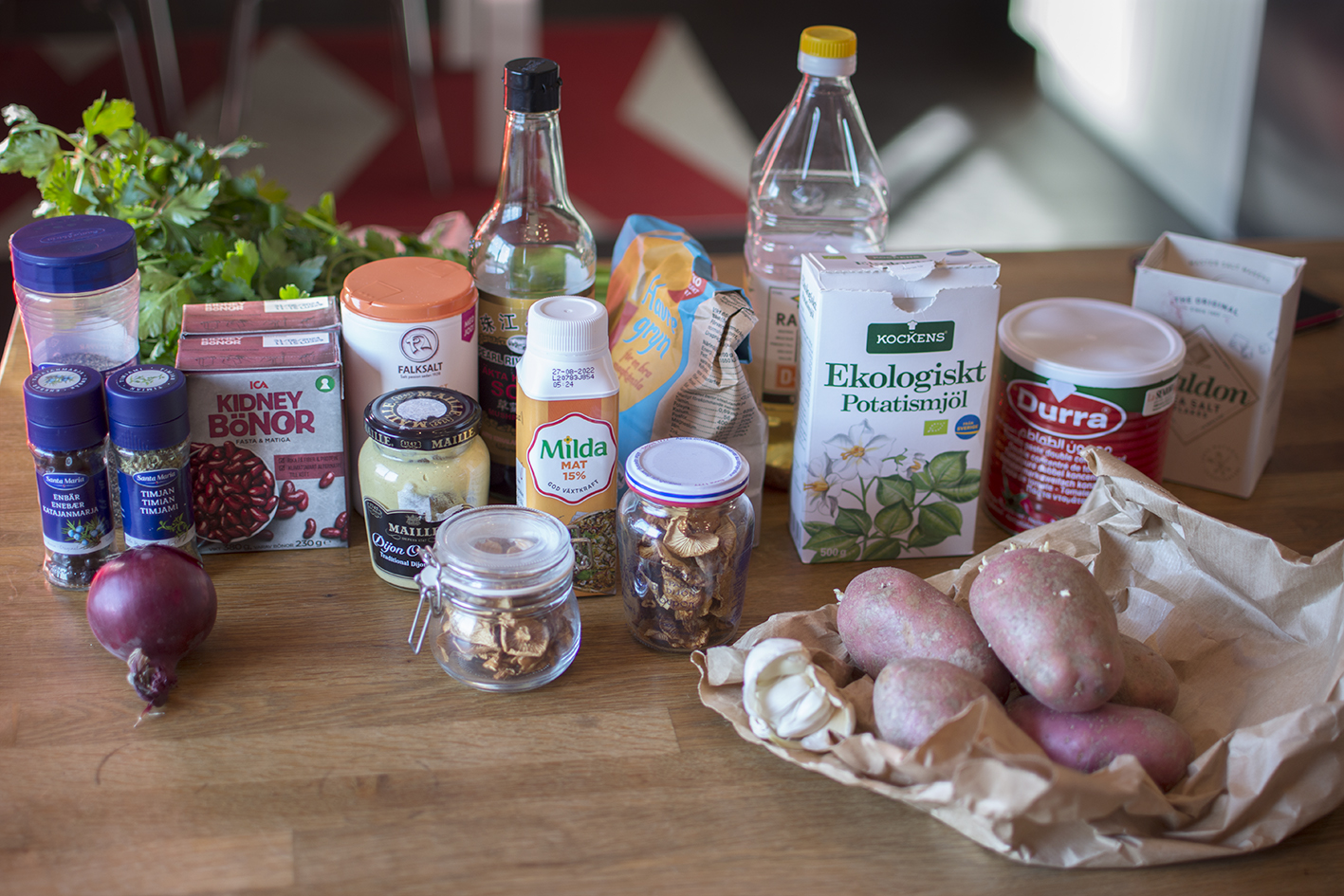 Den här rätten är en liten pärla! Tänk att det går att göra vegansk mat som är så rustik, mättande och smakrik. Vad sägs om ”järpar” med en liten ton av vilt tack vare enbären (nästa gång öser jag på med fler), en mustig kantarellsås och galet smakrik potatis?