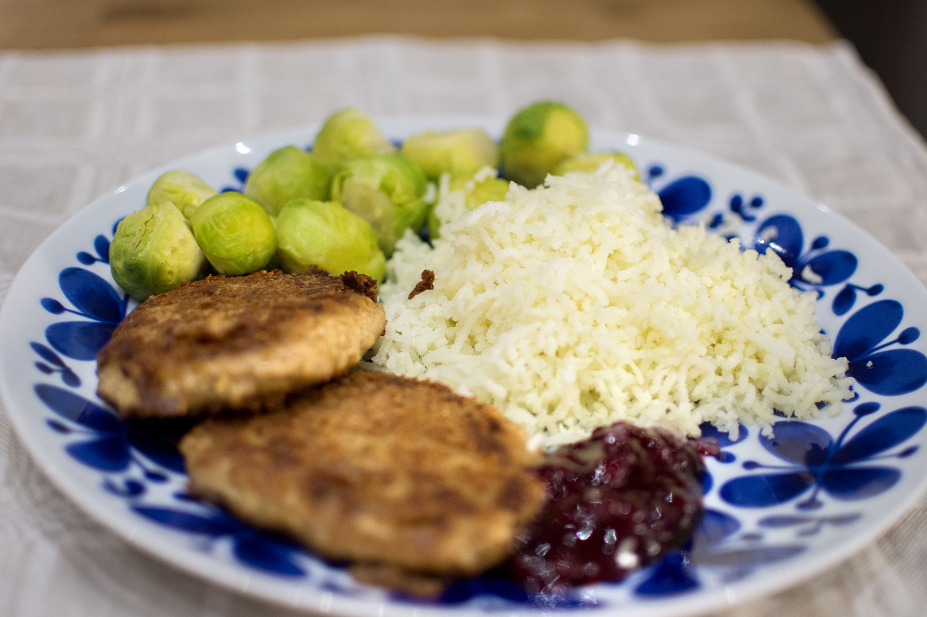 Servera biffarna med potatisen, brysselkål och en klick lingonsylt.