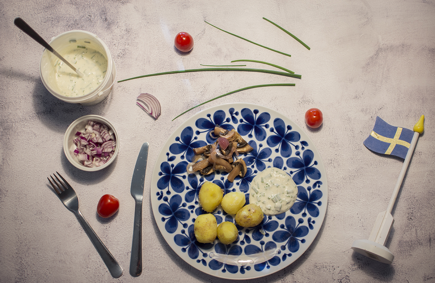 Svill (= växtbaserad sill), färskpotatis, kall sås med tångkaviar och färska örter från trädgården. Hade tänkt publicera den till midsommar, men veckans rätt är verkligen sommar på en tallrik hela säsongen!