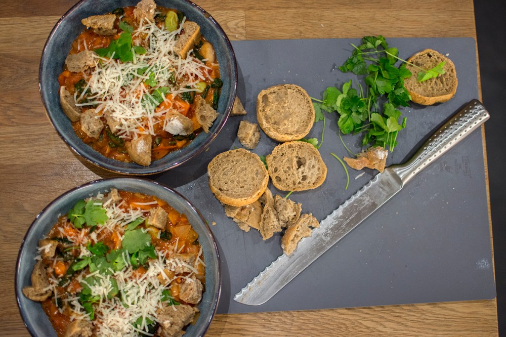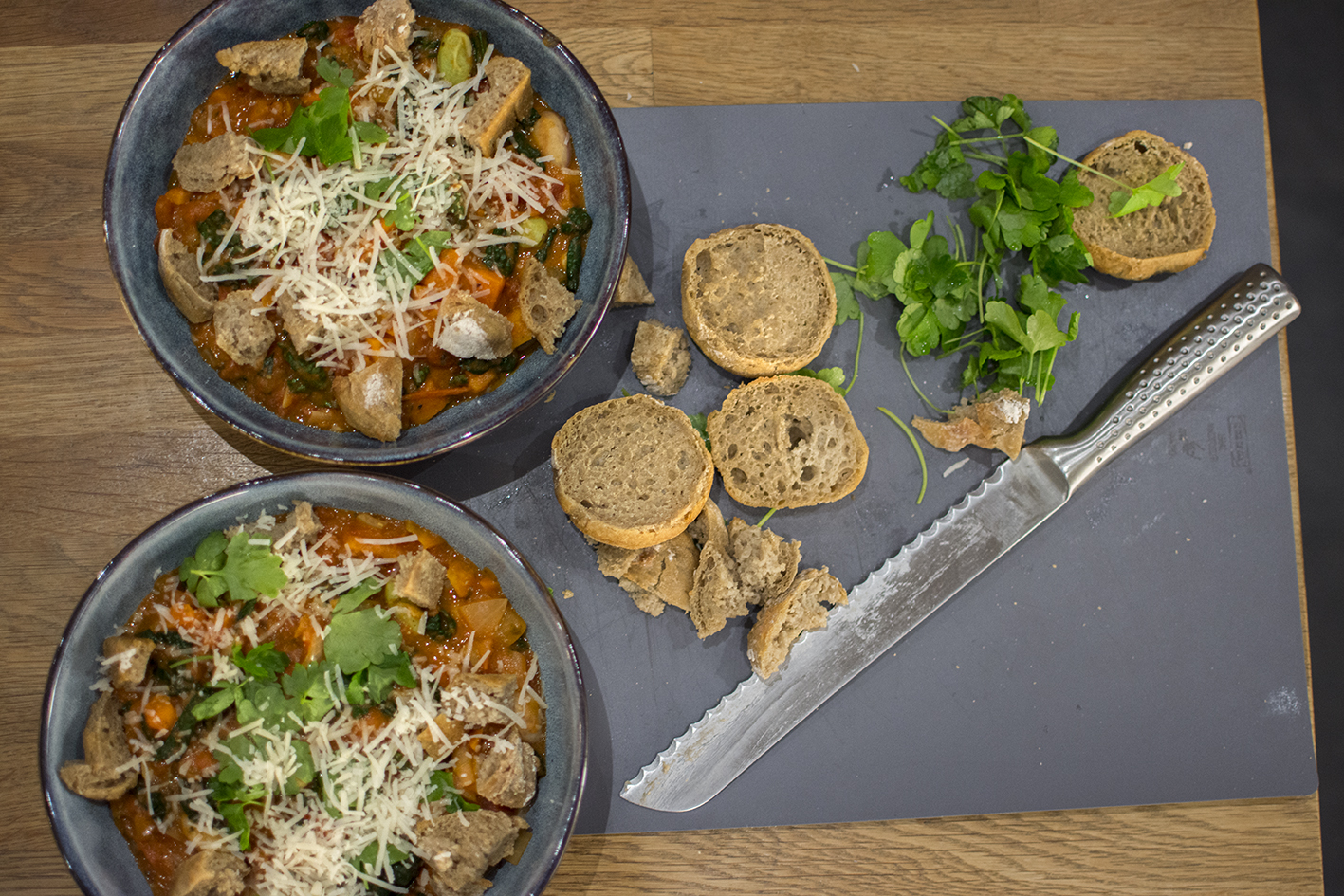 Ribollita är en slags bönsoppa med bröd, en italiensk klassiker som säkert finns i tusen varianter. Nu finns det 1 001. Jag inspirerades att laga rätten när jag såg ett inlägg av Släng dig i vego på Instagram och la sedan min egen touch på det hela, bland annat med borlottibönor från årets skörd i pallkrage.